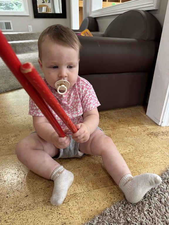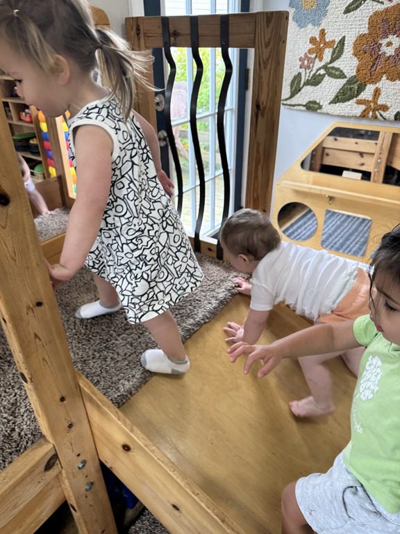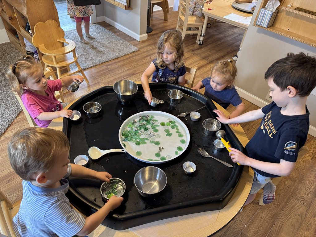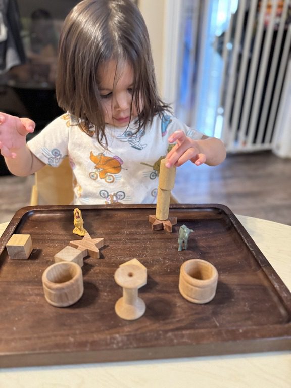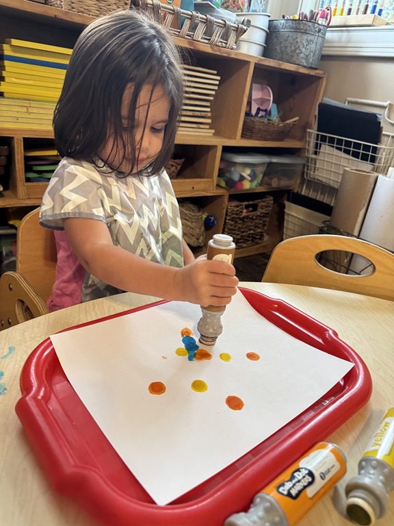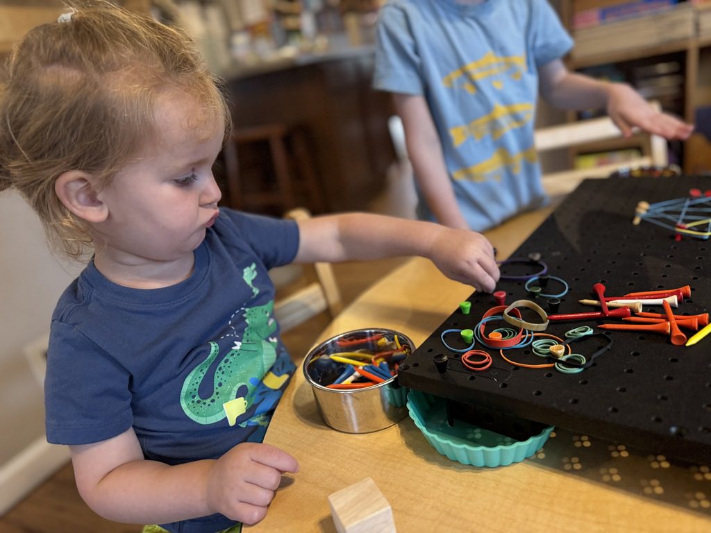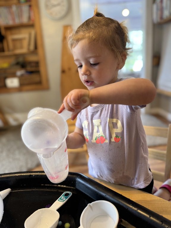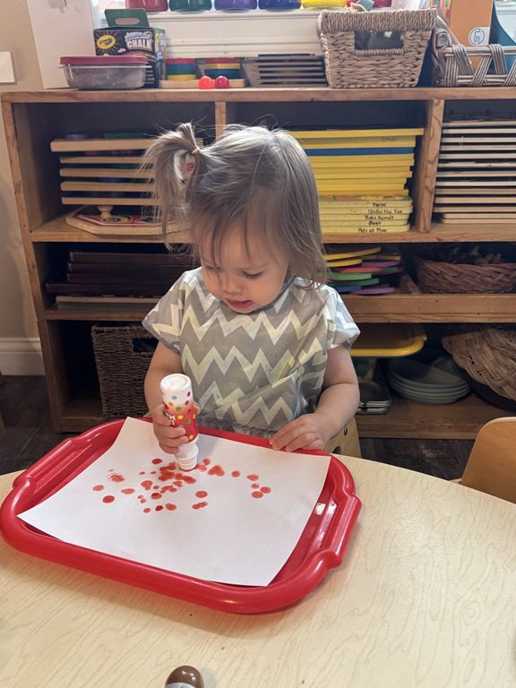 This morning we practiced sorting by color at our welcome activity. We found all the right places for the colored beads. We practiced color names and counting as well. Some of us got so excited about sorting that it became a full body experience :).