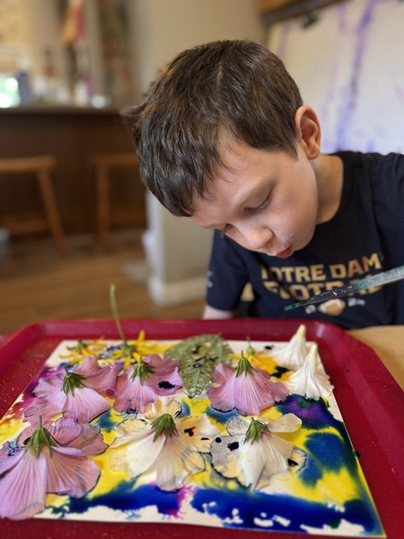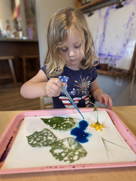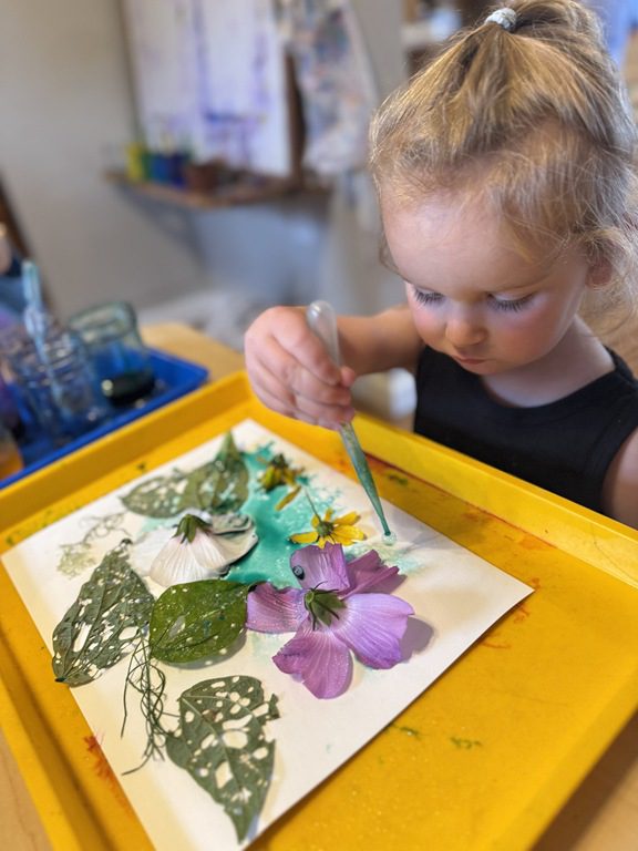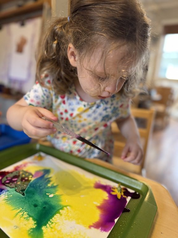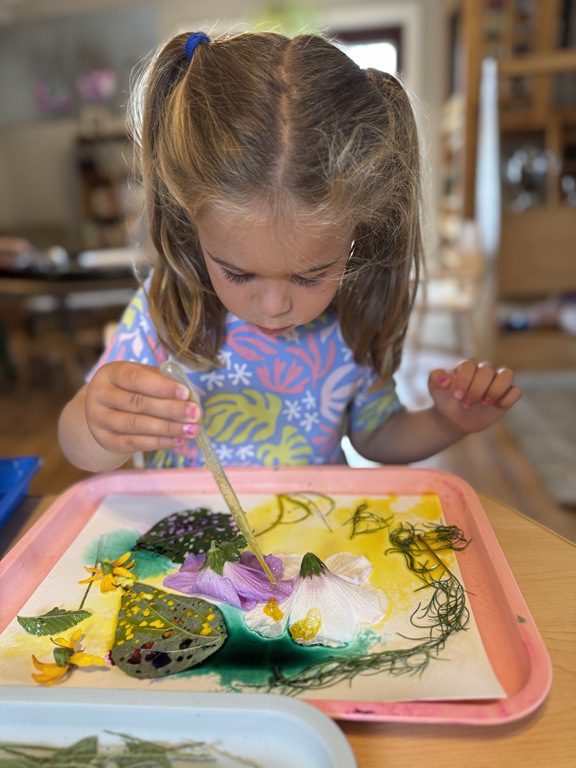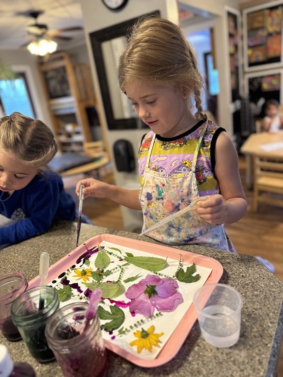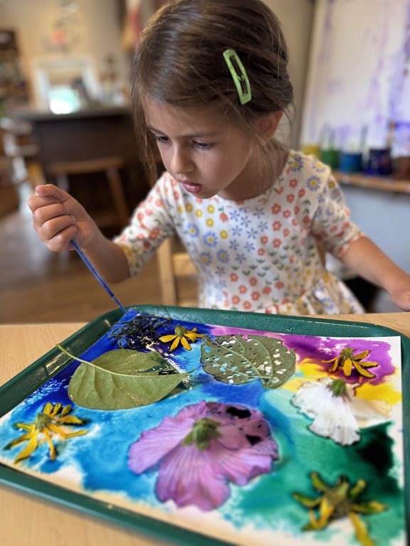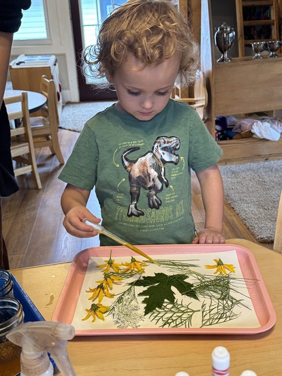 In the art center we continued working on our water color leaf and flower paintings. We created beautiful arrangements on out paper and added color. We are excited to see what our paintings look like when they dry!
