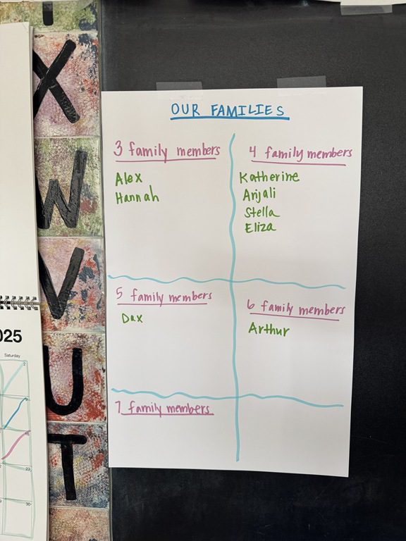 Today in PREK1 group, we read ‘My Body’. We talked about similarities we have in our physical appearance such as we all have hair! We also dove into the specific differences such as hair color and whether we have straight or curly hair. When we were done reading, we talked about our family size. Each group member had a chance to count the number of family members that live in their household. We totaled the family members and marked it on our chart. This allowed friends to see what other peers have the same family size!