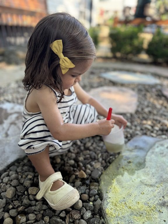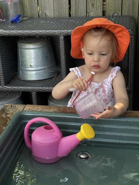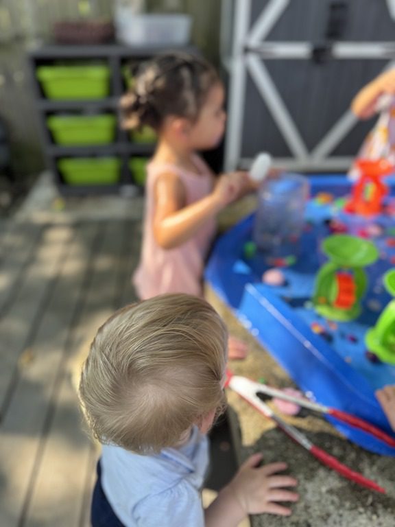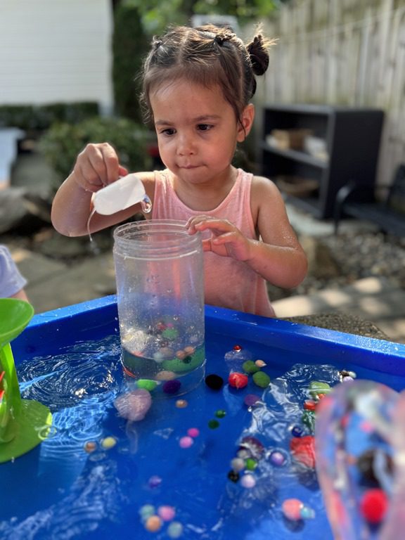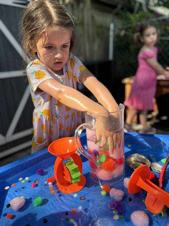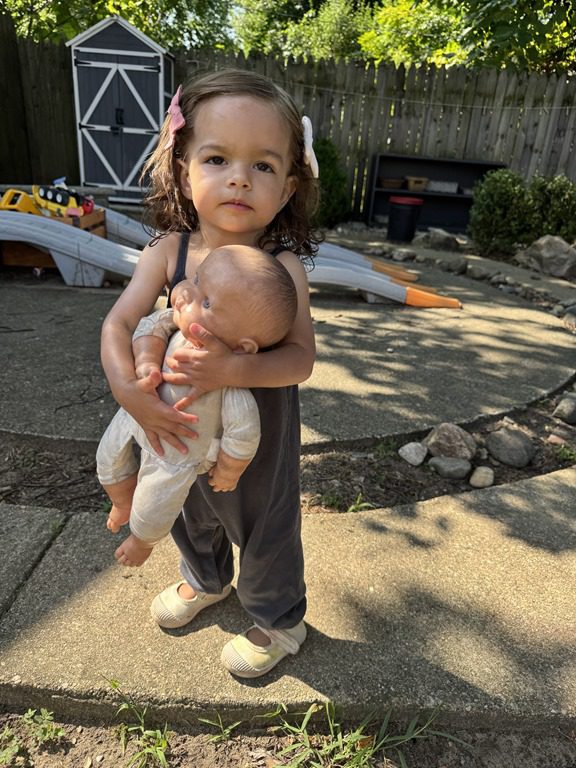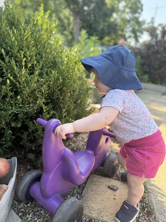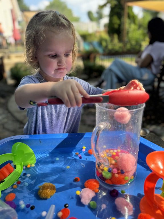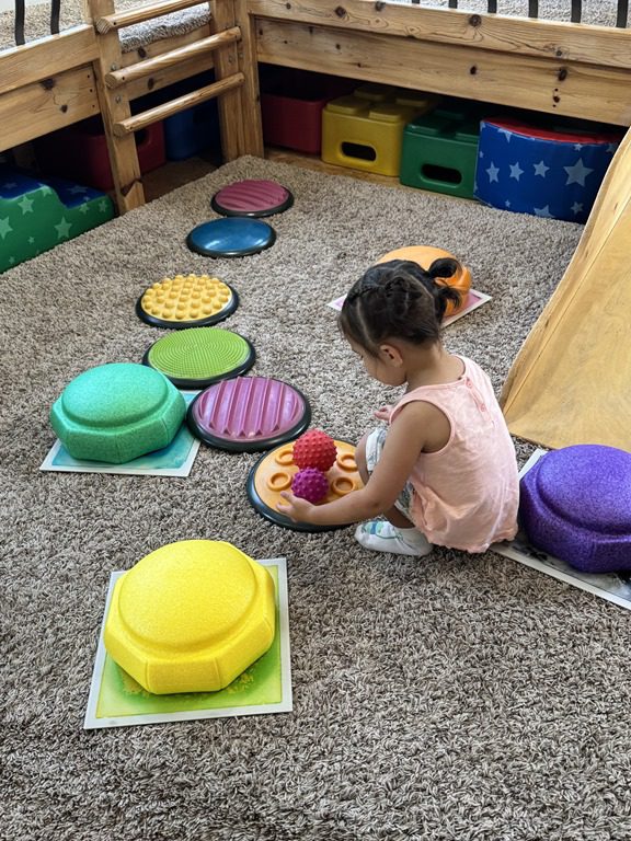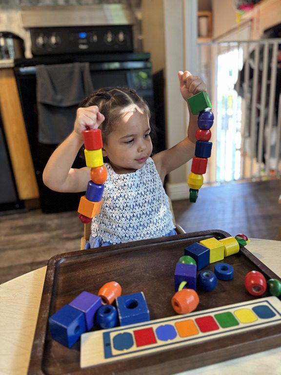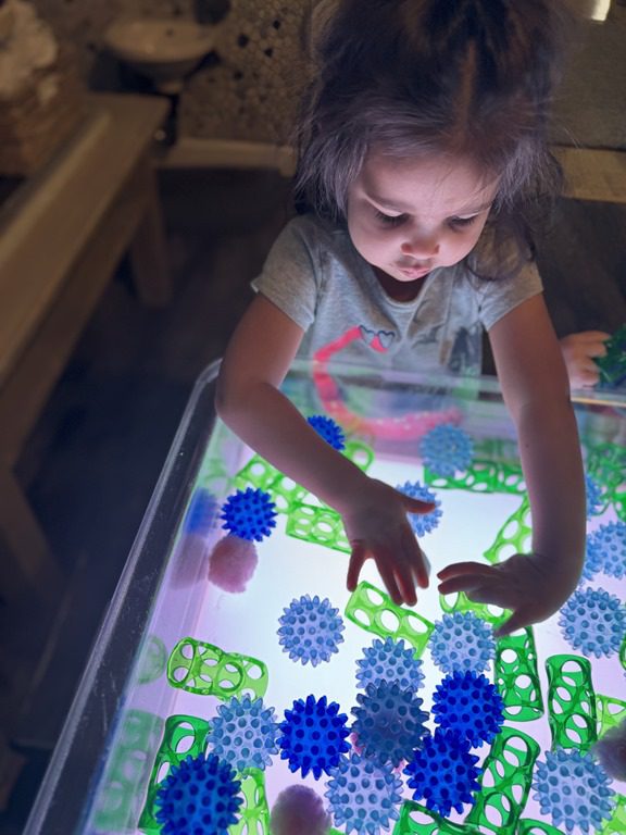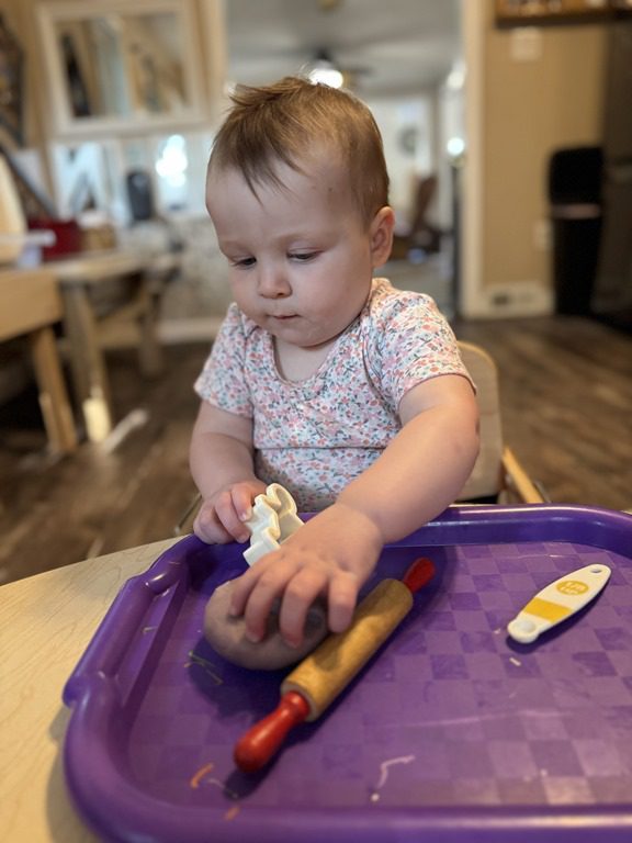 This morning we explored play dough of all colors. Friends have really been enjoying play dough this week so we decided to take it to the next level and offer it in imaginative play. One friend had the idea of using the play dough to decorate the animals as “carousel animals”. Several other friends joined in the imaginative play and got creative with building their own carousel animal. It was a great example of older friends teaching younger friends and introducing a more cooperative imaginative play atmosphere to emulate.