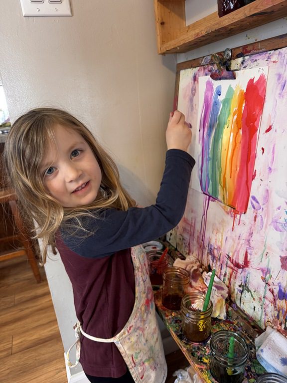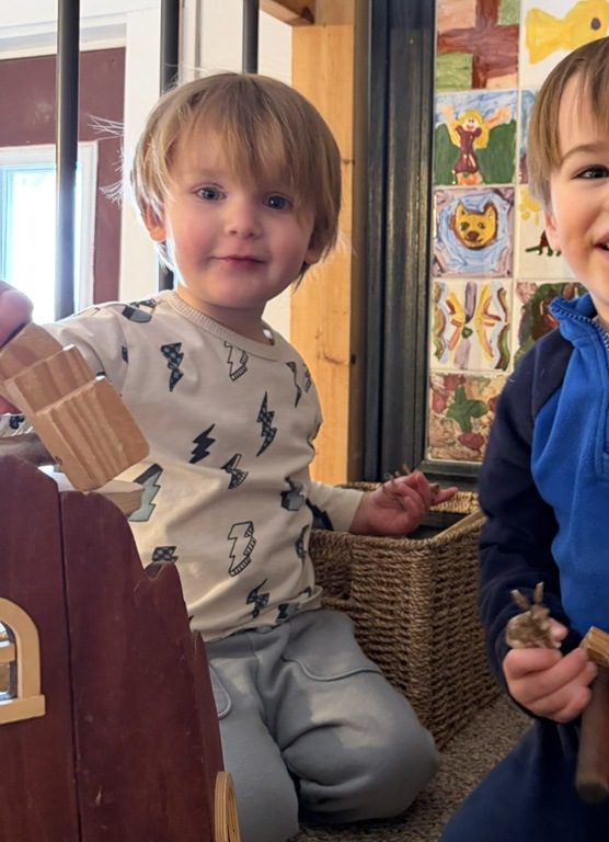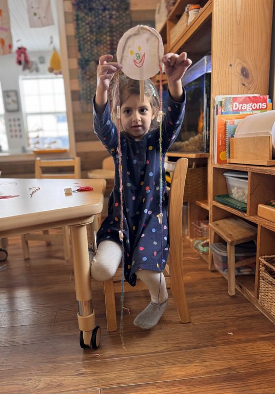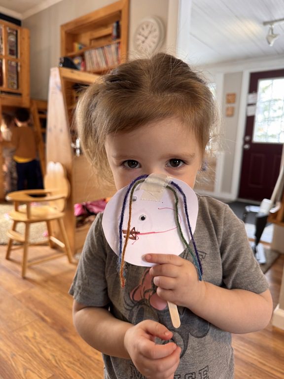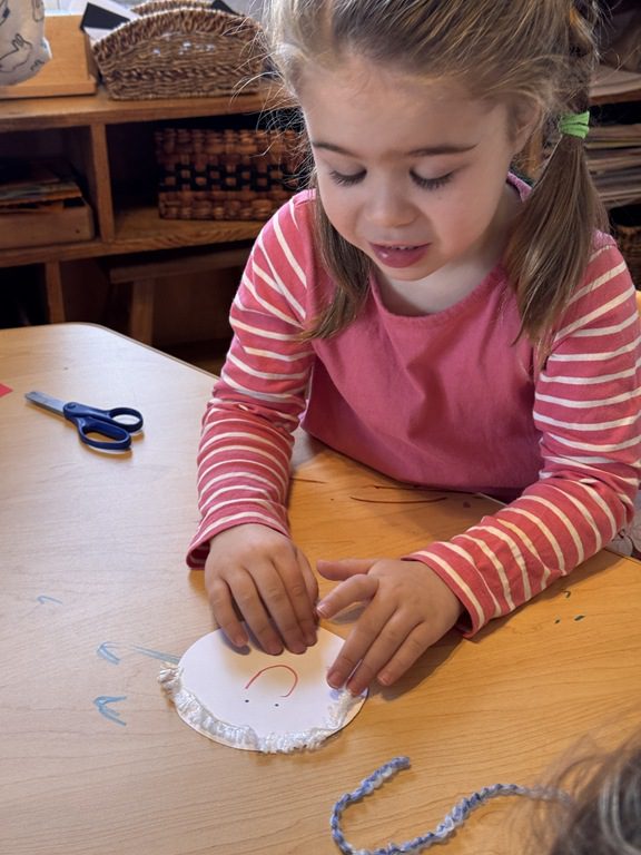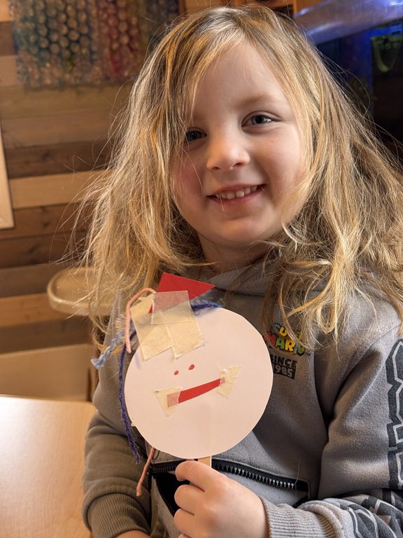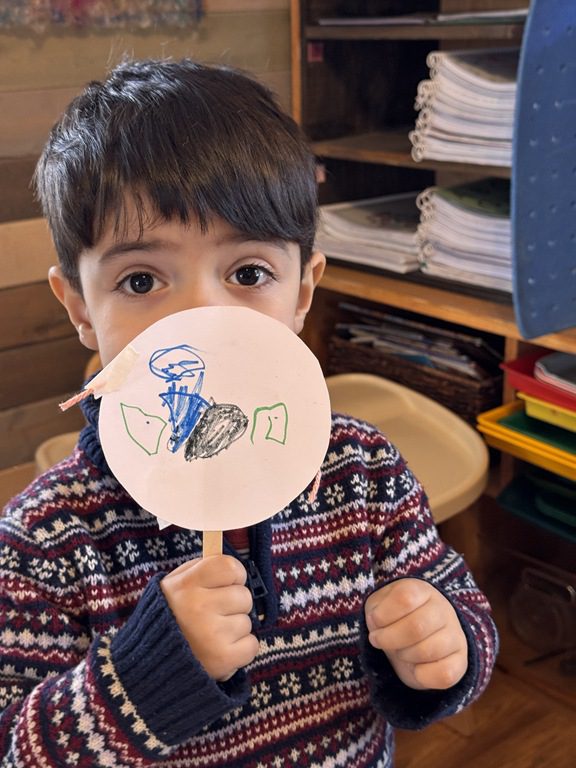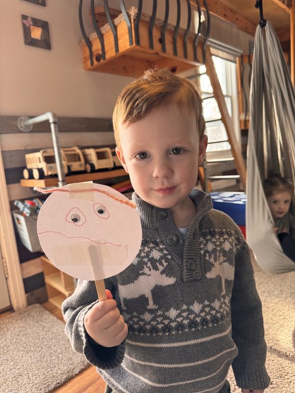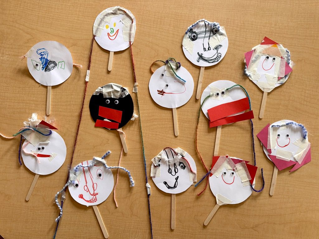 A puppet project sprung up in the art center this morning.  Several kids became interested in making them, so we added a variety of materials kids could use to support their project.  There were many creative and unique takes on on how to make the puppets look.  Kids enjoyed putting on a puppet show afterward.  Some kids loved the role of the “announcer” while other kids set up props.  Some kids chose to stay at the art center instead, enjoying the process of making the puppets more than playing with them.  Other kids made a puppet as quickly as possible, so they could get to playing with it.  We try to leave as much space as possible within projects for kids to take what is most fitting for their individual personalities and developmental needs.  We find they learn best this way!