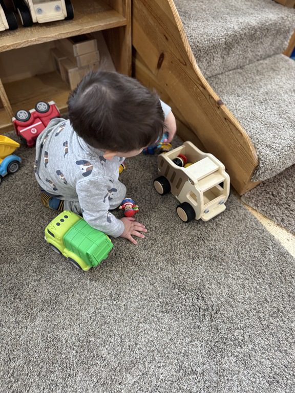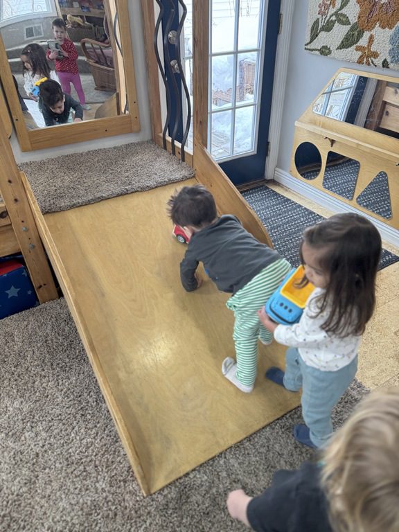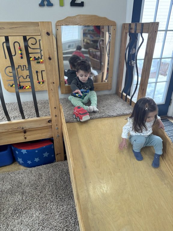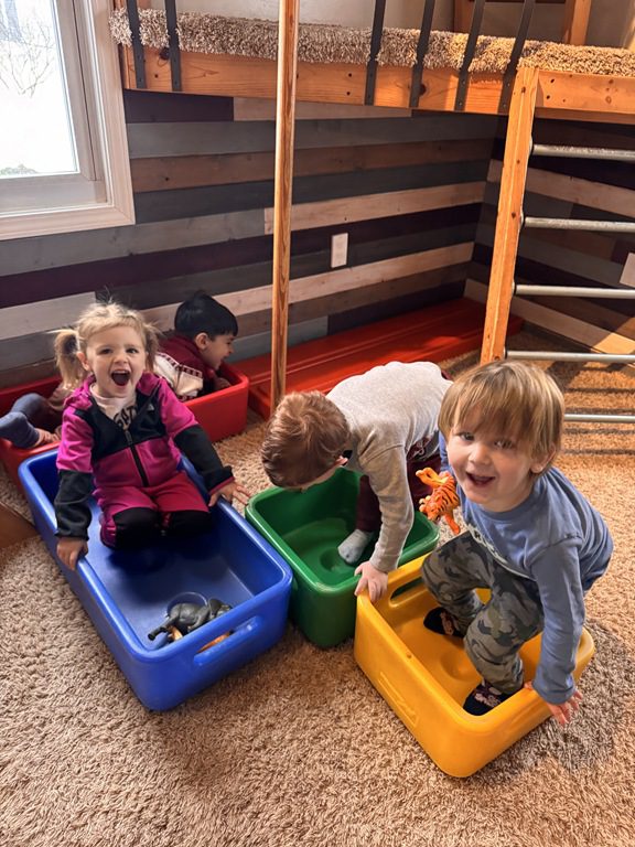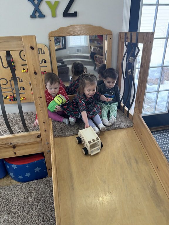 This morning, Rowan, Cece and their friends grabbed trucks and watched them go down the habitrail slide!