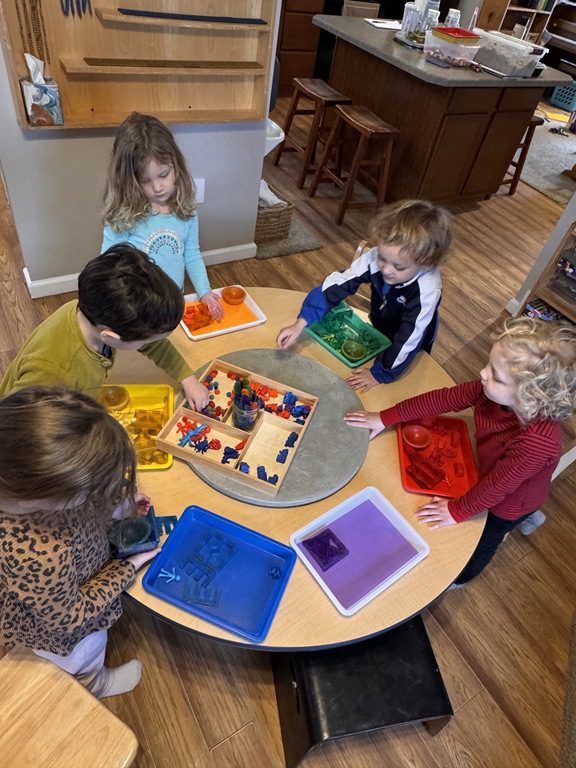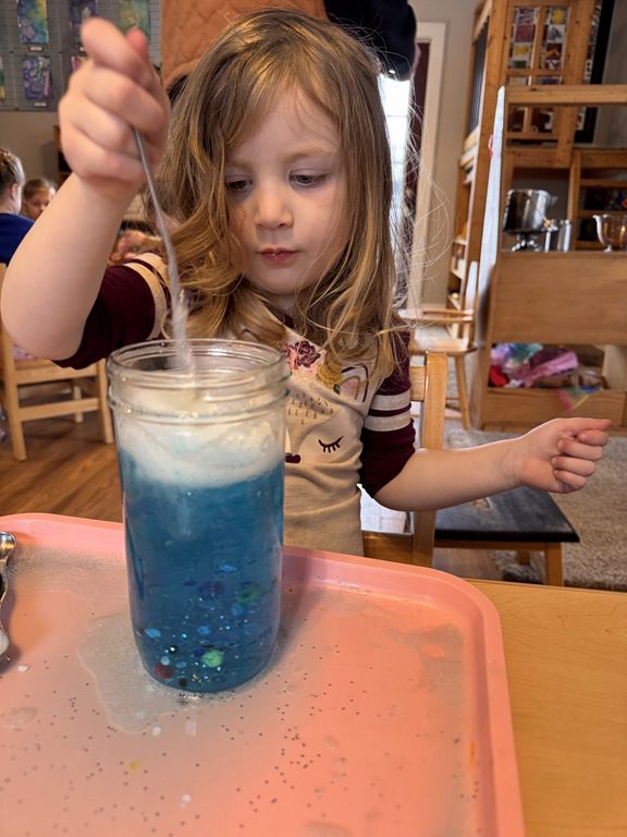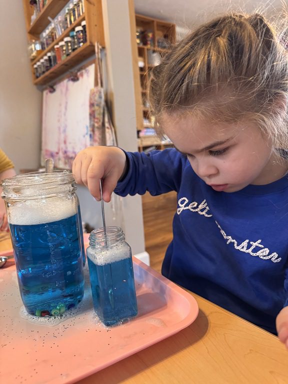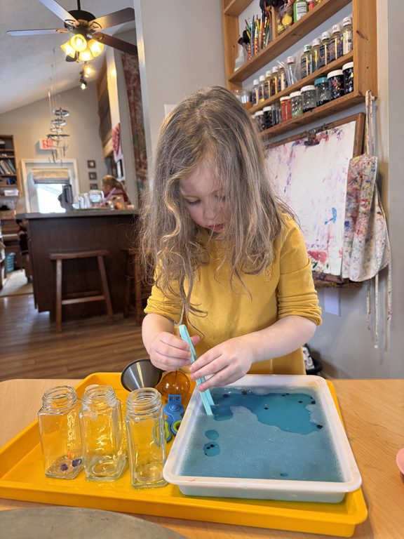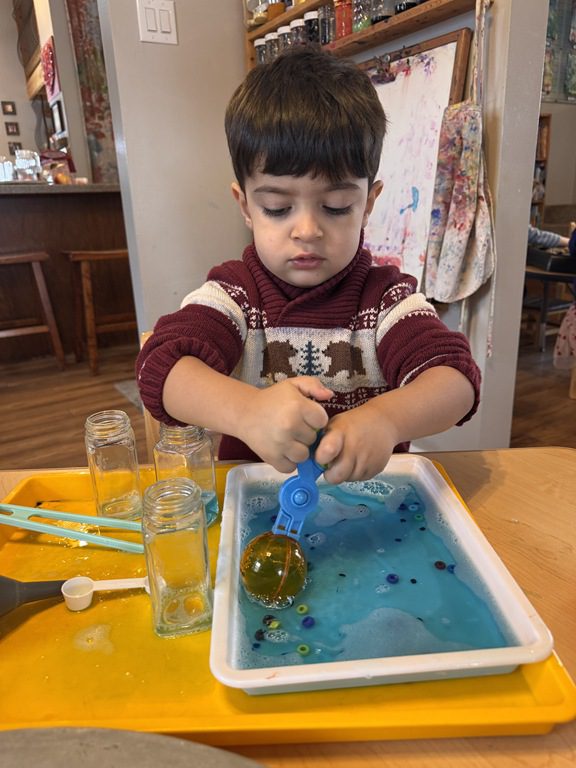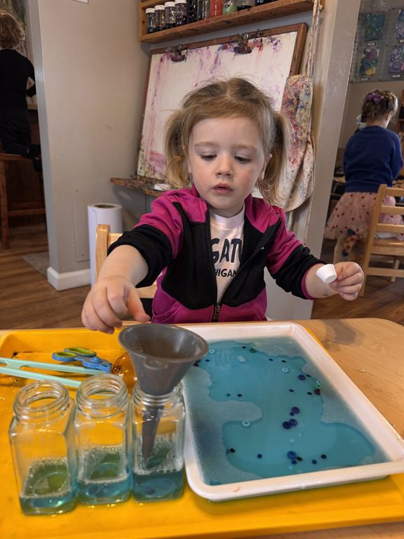 There were several younger friends who became very interested in trying to catch the debris in the jar, so we set up an area where they could follow that inclination to do some fine motor work!