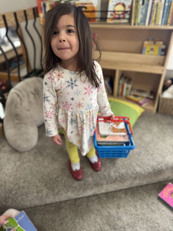 Then, a couple friends used baskets to collect books, and we all spent some time looking at books.
