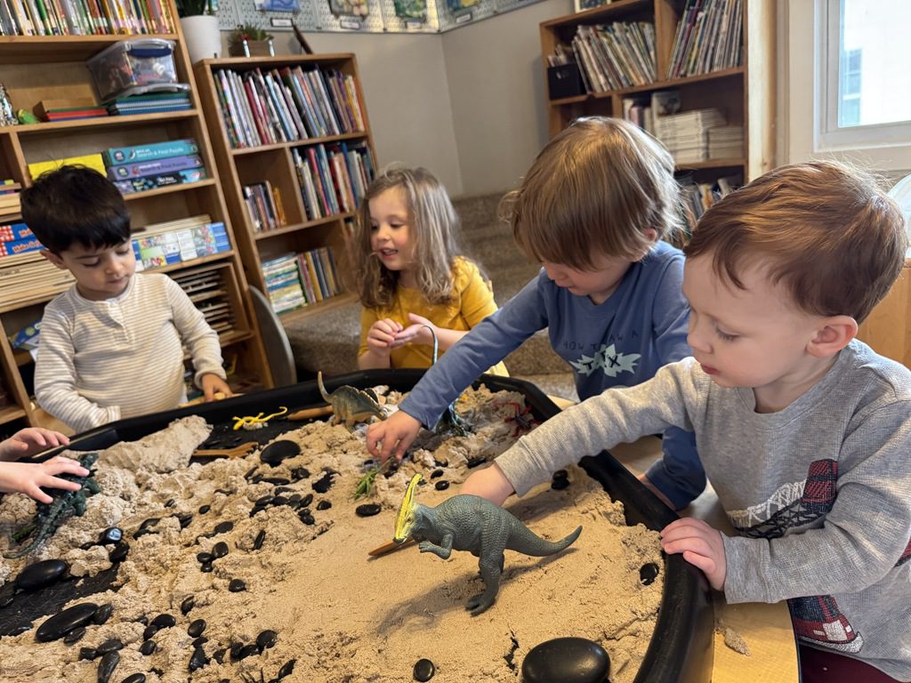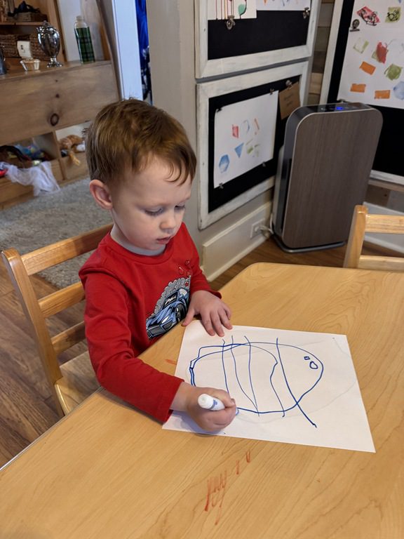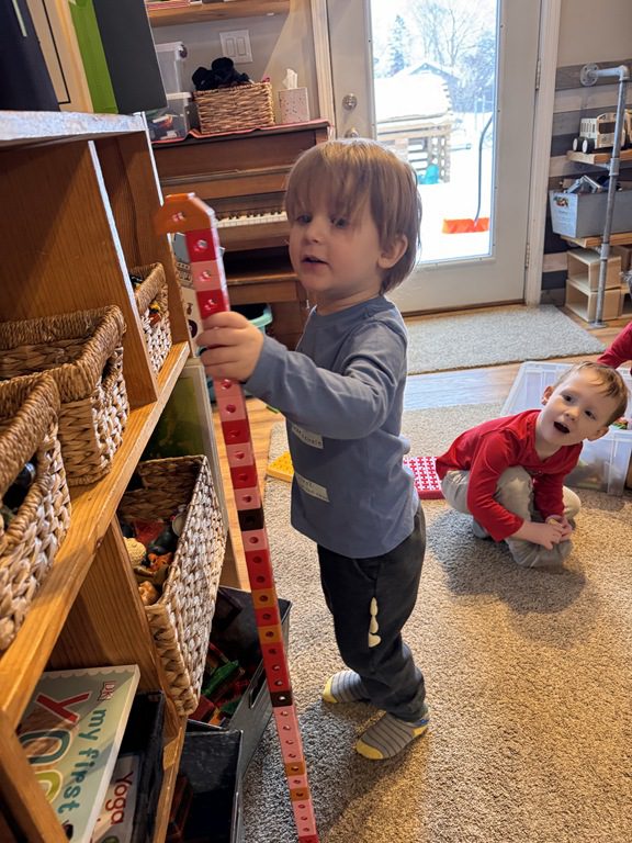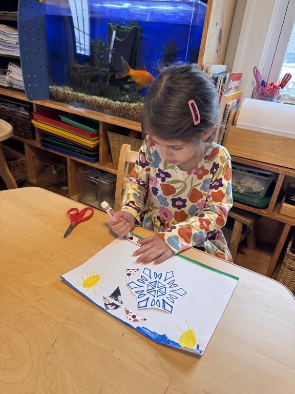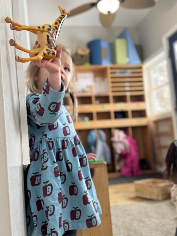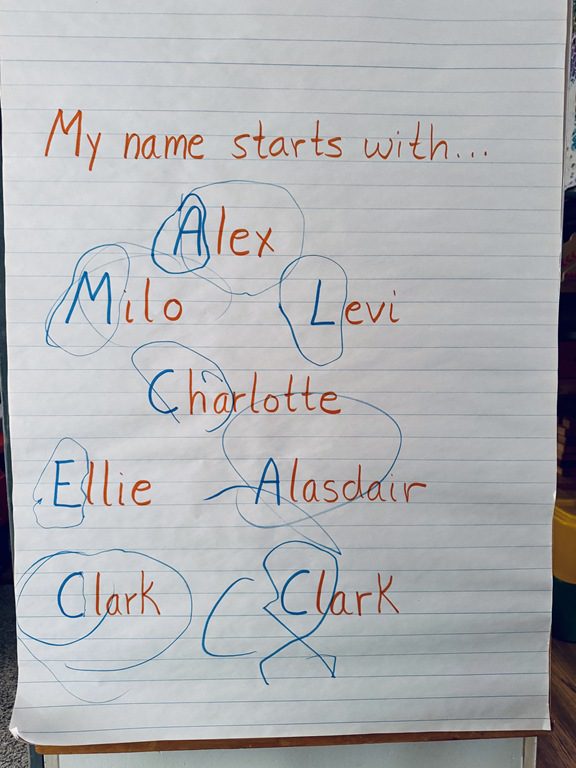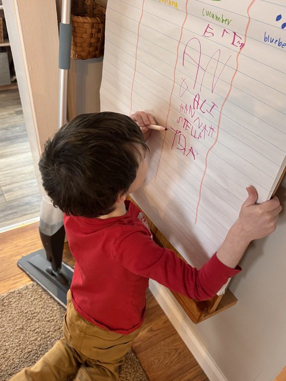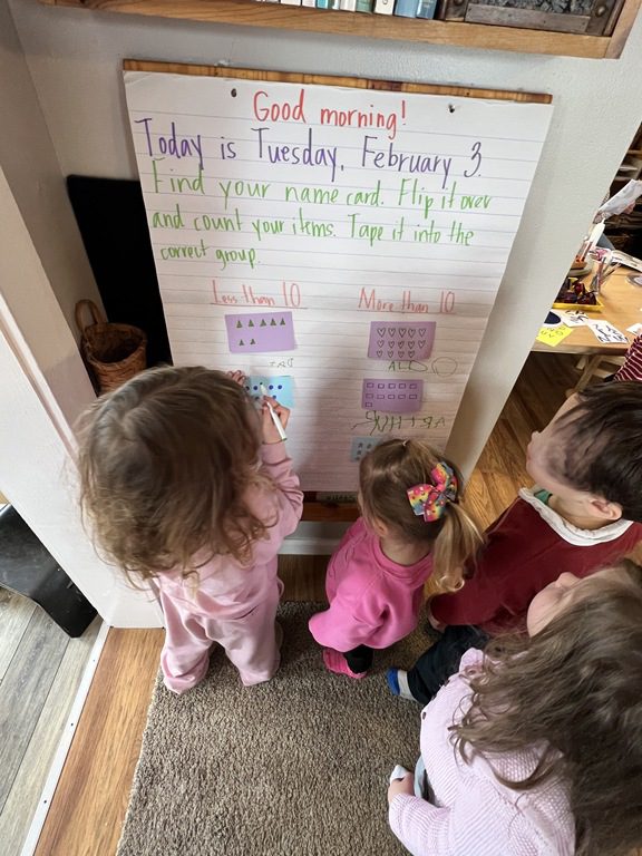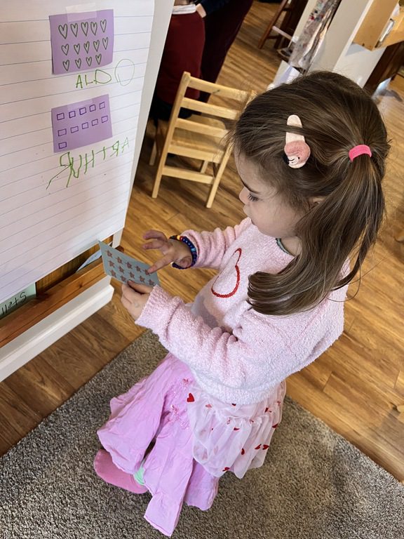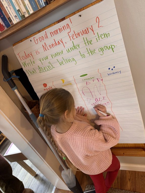 We kicked off our week in PREK1 group by starting to dive into groups and figuring out what item doesn’t fit into the group. There were four types of food on the sign in chart: three fruits and one vegetable. Children wrote their name under the vegetable as it didn’t fit well with the other three items. Of course, this led into a conversation about how some vegetables with seeds are technically considered fruit. It was a great and productive conversation between a few peers where they were able to state their thoughts!