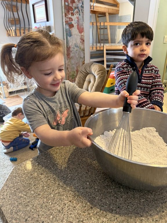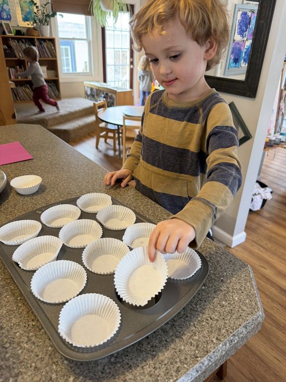 Our kids love our apple oat muffin recipe, so several friends helped to make them to go with lunch today.  Everyone was excited to eat them!