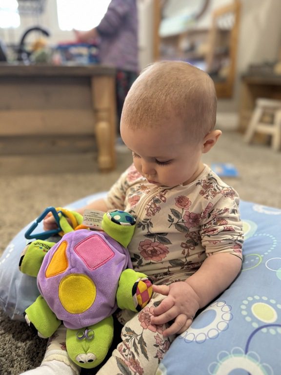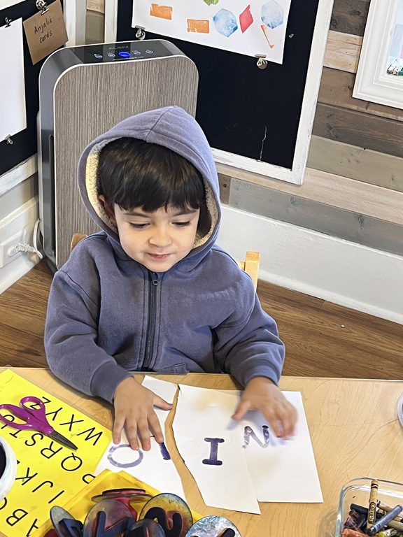 When children play with letters whether they’re doing a large foam floor puzzle or working with stamps to spell their name, they are able to soak in and retain the information as children learn best through play!
