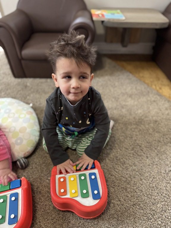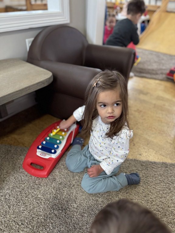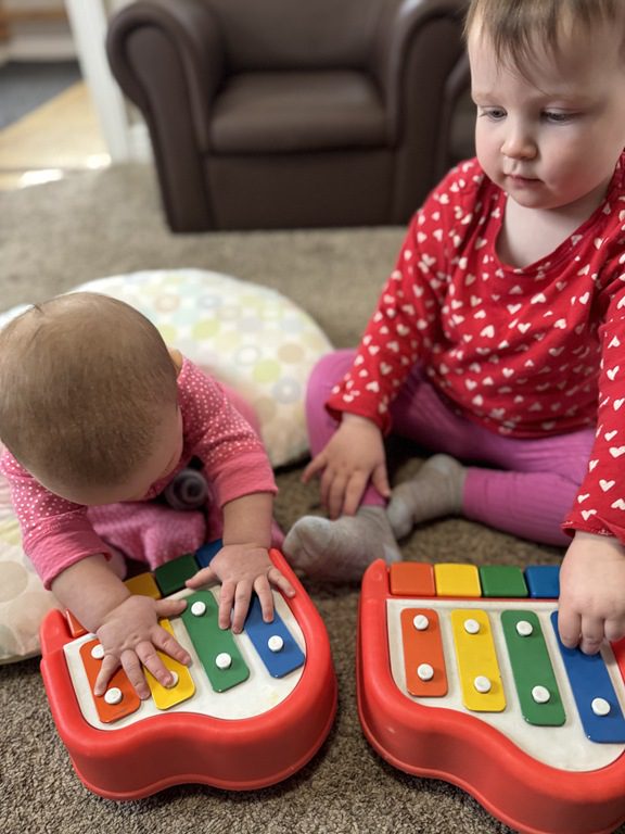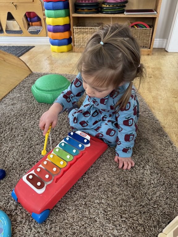 Then we did some music making with baby Rose! We pulled down our Little Tykes pianos and xylophones and took turns playing them.