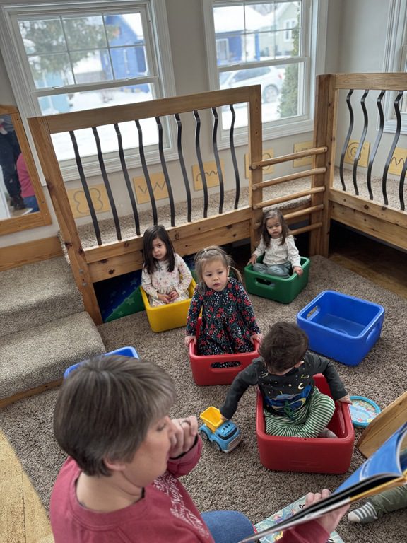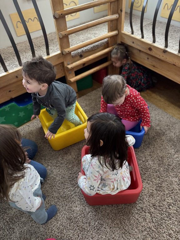 We also pulled out the big plastic blocks that we turned into sleds and Miss Bekah read winter themed teacher books to everyone.