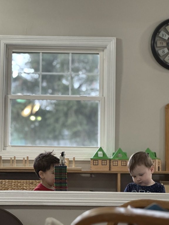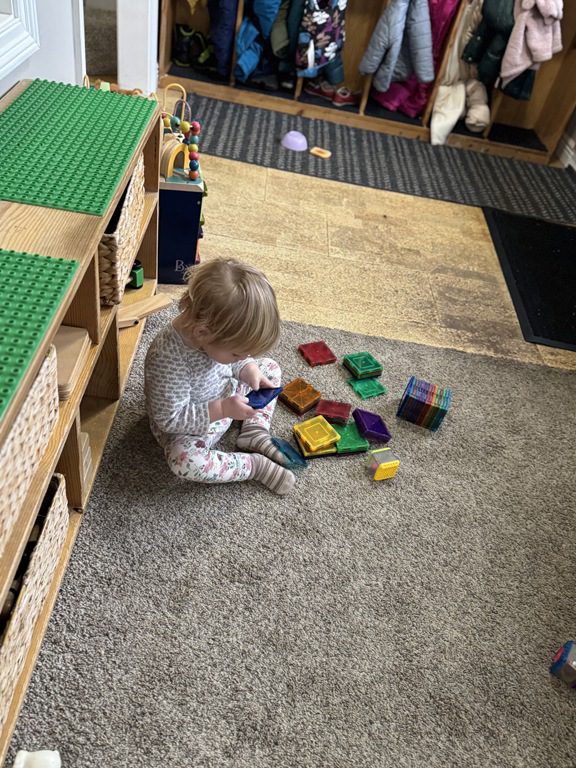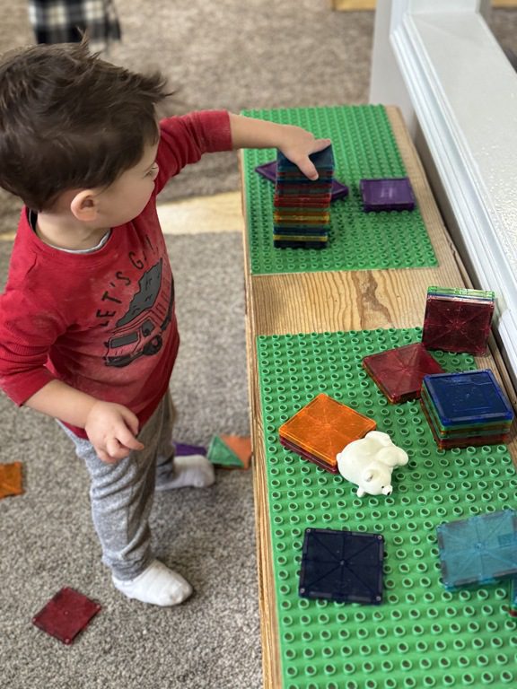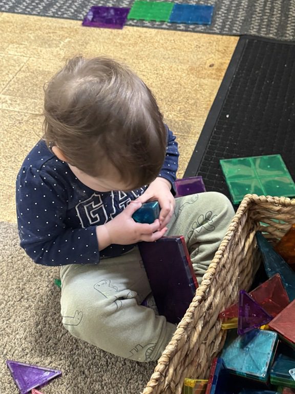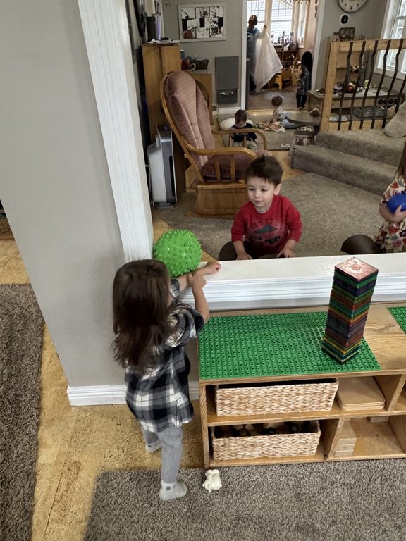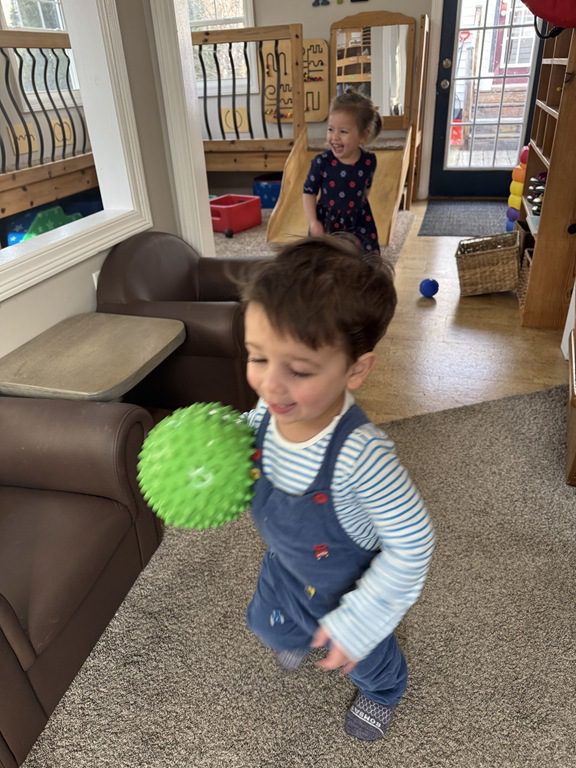 Throughout the morning, we also played with Magna-Tiles.. Rowan and another friend also spent some time throwing and rolling balls!