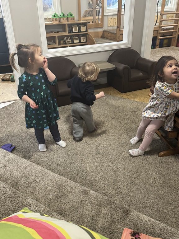 This morning we danced to several songs by Greg and Steve. The Body Rock, Jump Down, Turn Around and The Mack Chicken Dance, were a few of the songs. One of our friends really enjoyed dancing to the Chicken Dance.