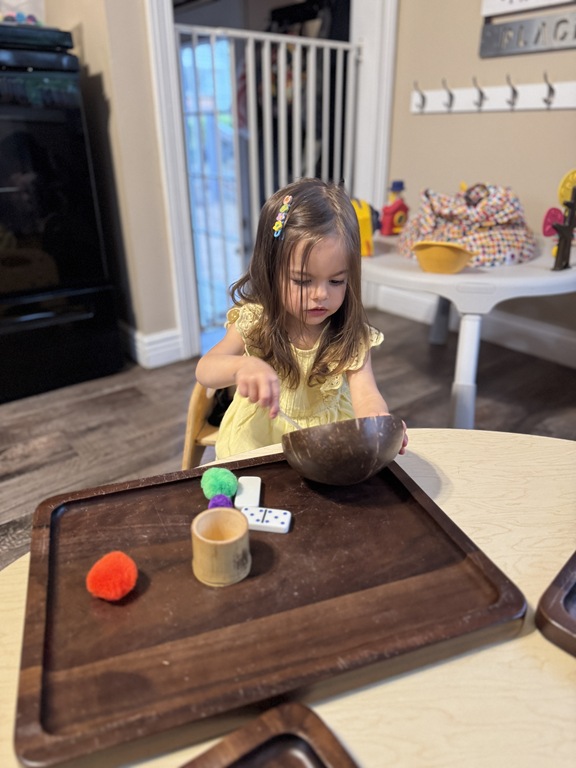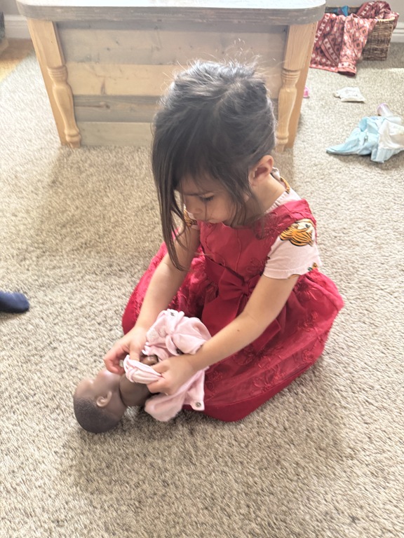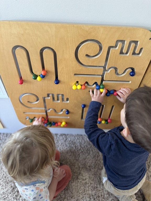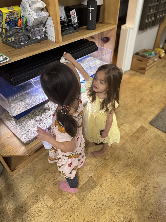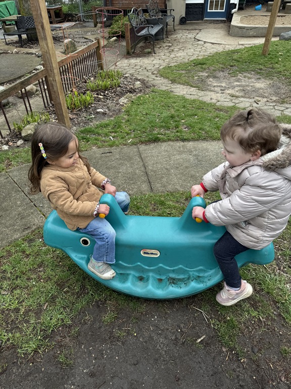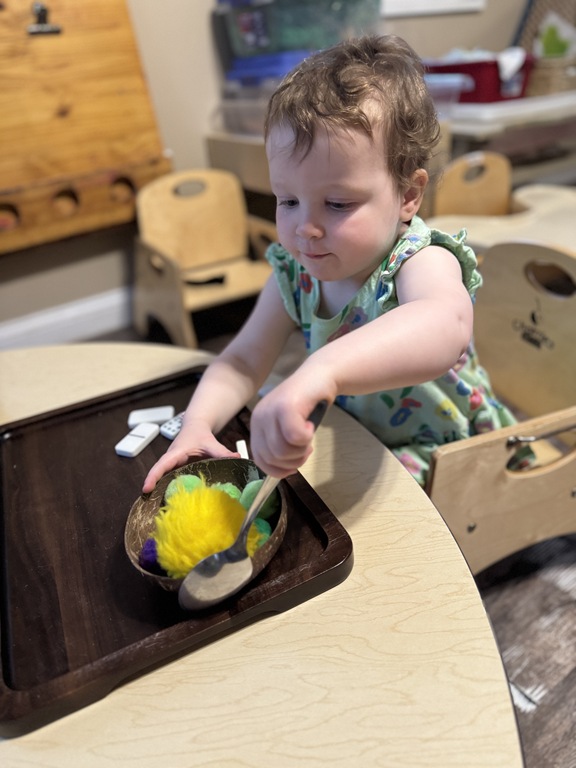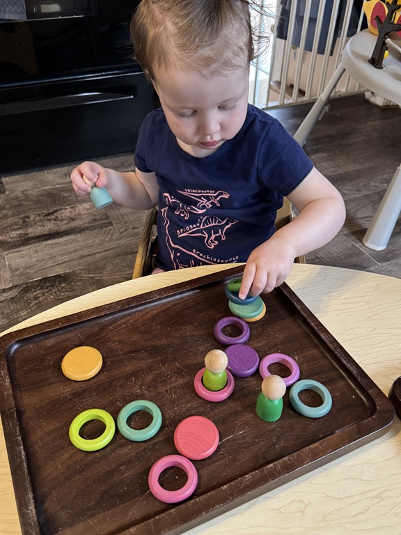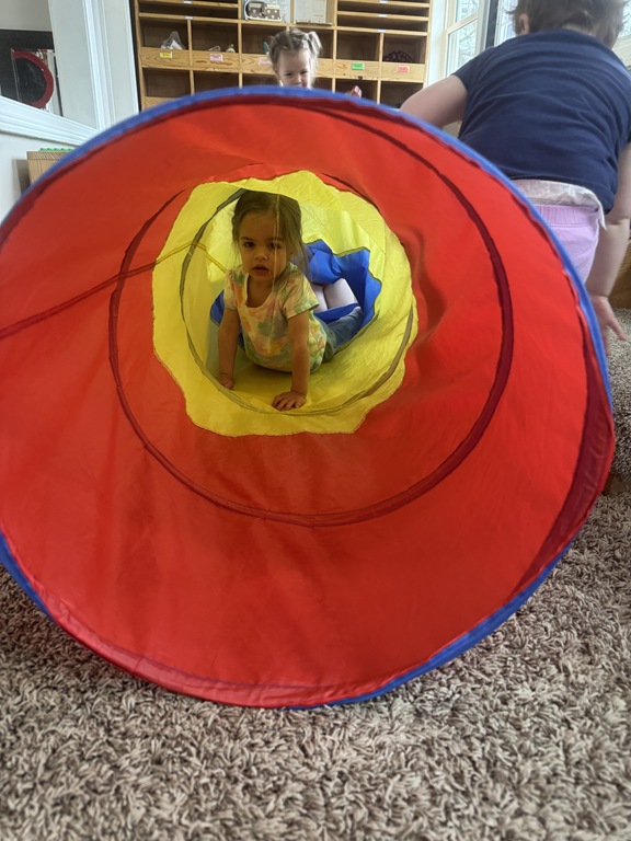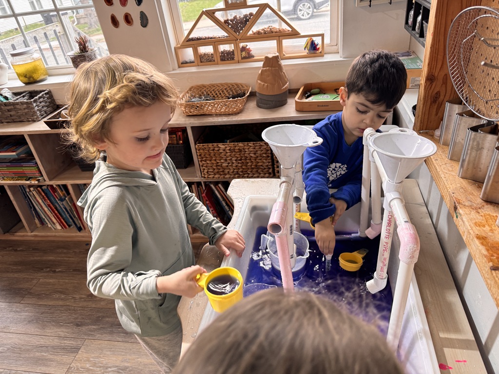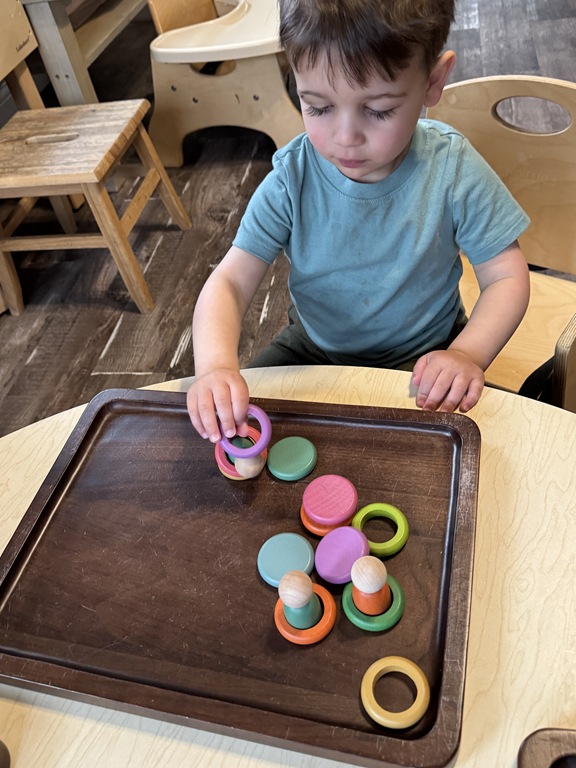 This morning, we offered an imaginative play activity for kids to explore ocean animals. Kids used shells to build boats, islands, and houses. Others collected shells with nets. Kids tried noticing which shells were alike and grouping them as they played. We also talked about how shells are actually made by animals even though many kids viewed them as plants.