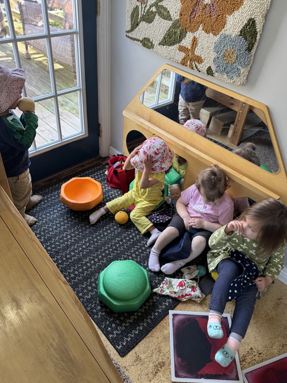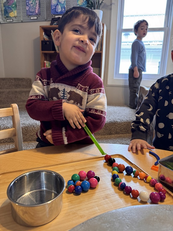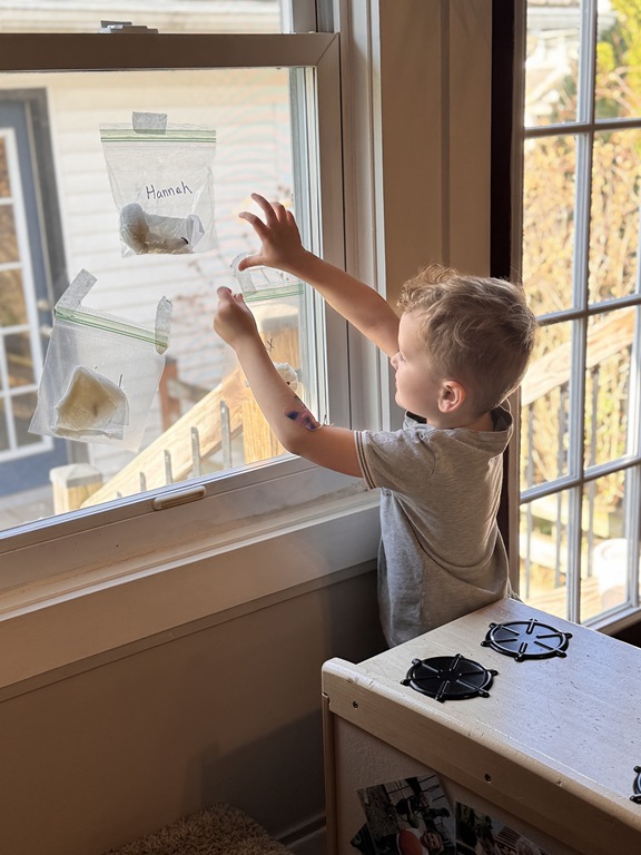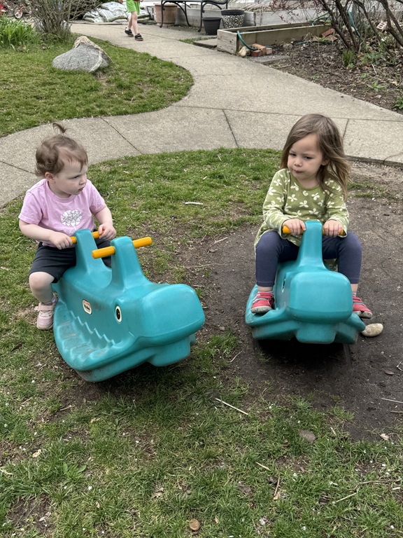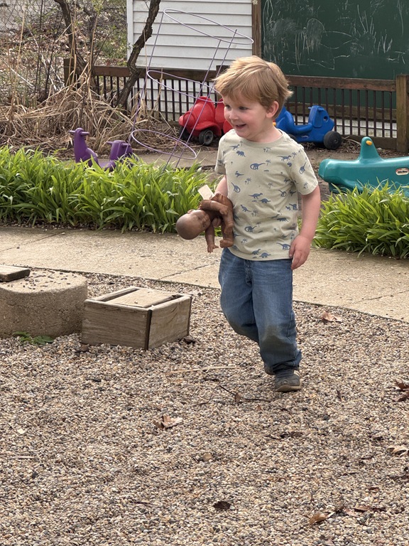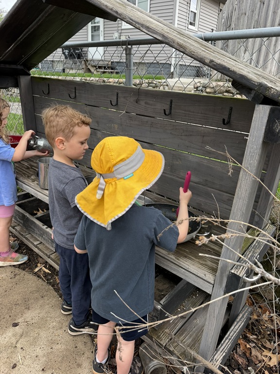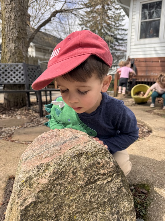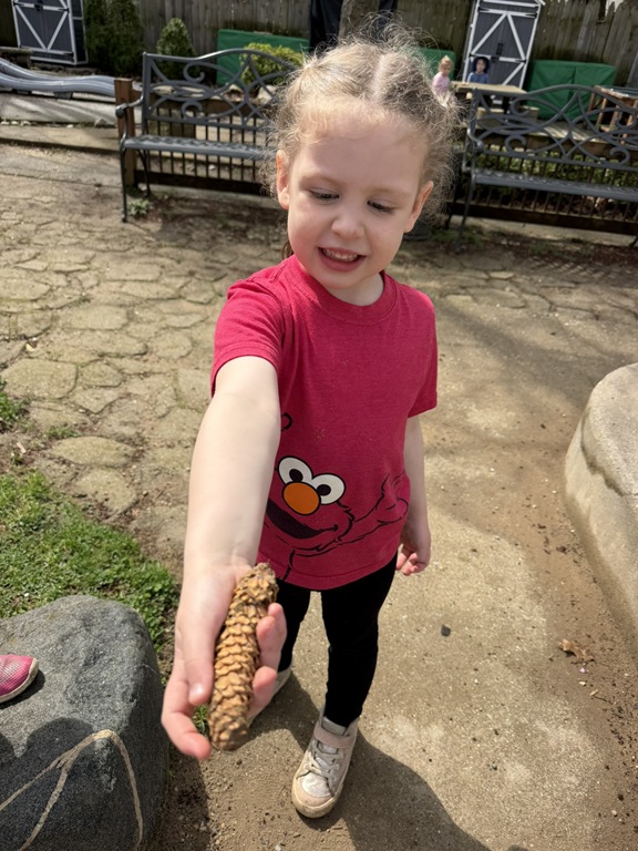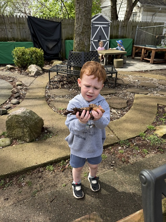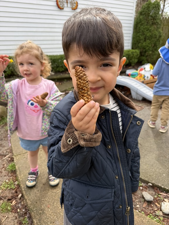 Outside, several kids were interested in collecting seeds. They found pine cones and maple seeds that had fallen from the trees during the wind storm yesterday afternoon. Kids were able to group the seeds that were the same. We talked about which kind of tree each seed had come from.