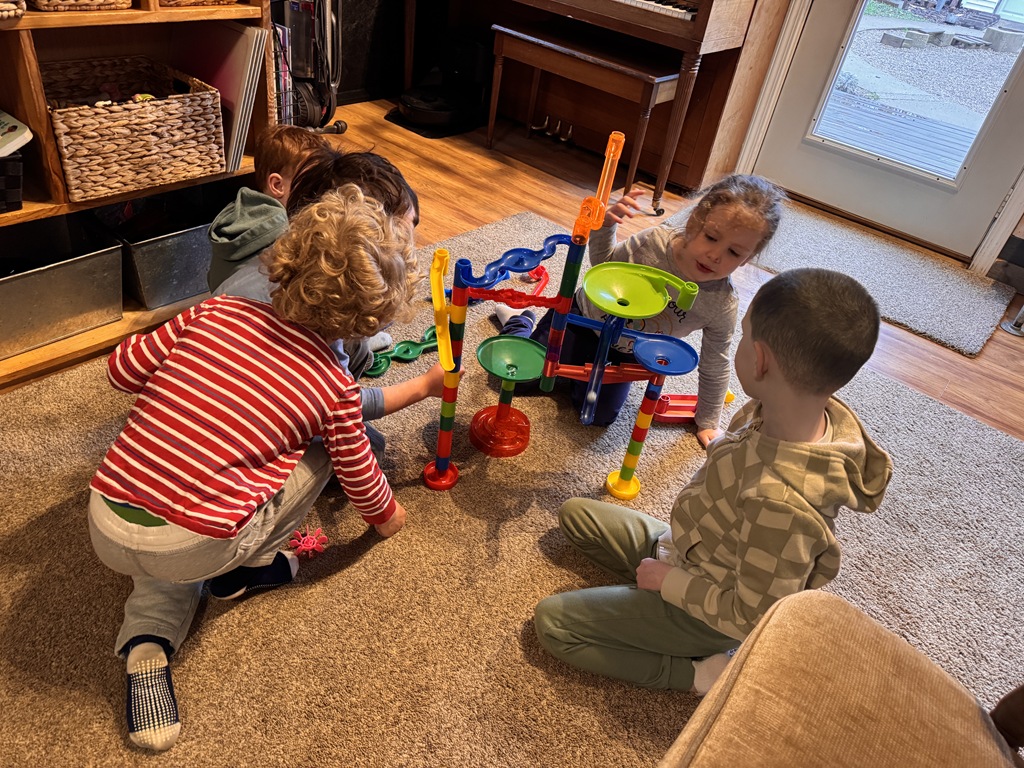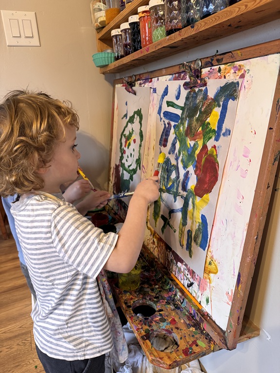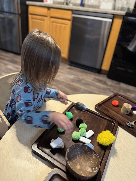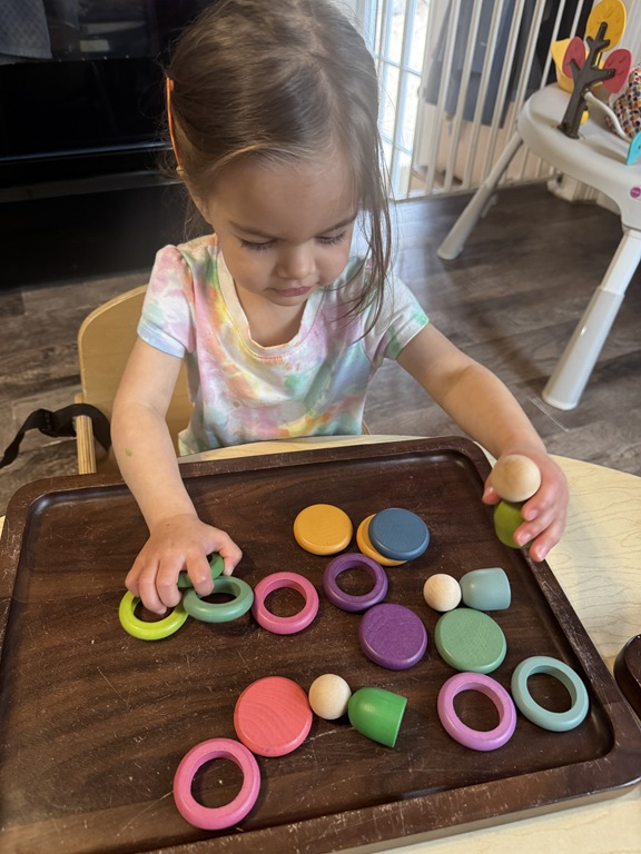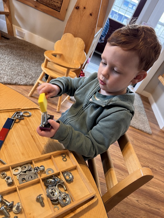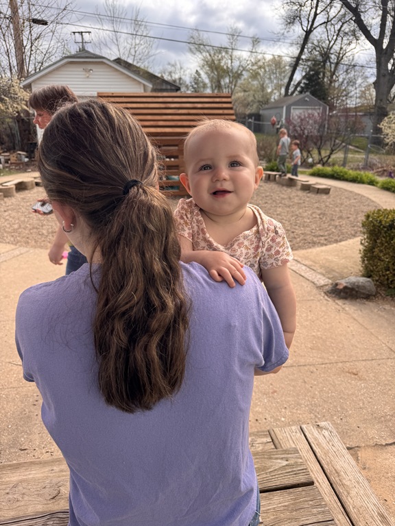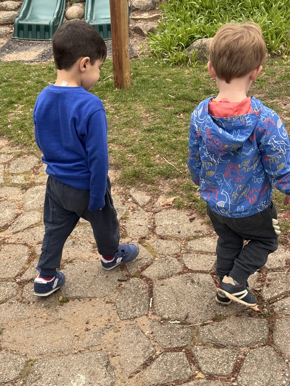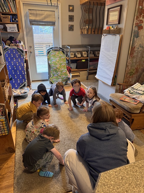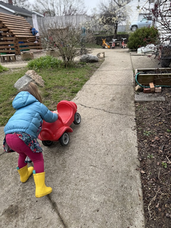 Outside, several kids were interested in collecting seeds. They found pine cones and maple seeds that had fallen from the trees during the wind storm yesterday afternoon. Kids were able to group the seeds that were the same. We talked about which kind of tree each seed had come from.