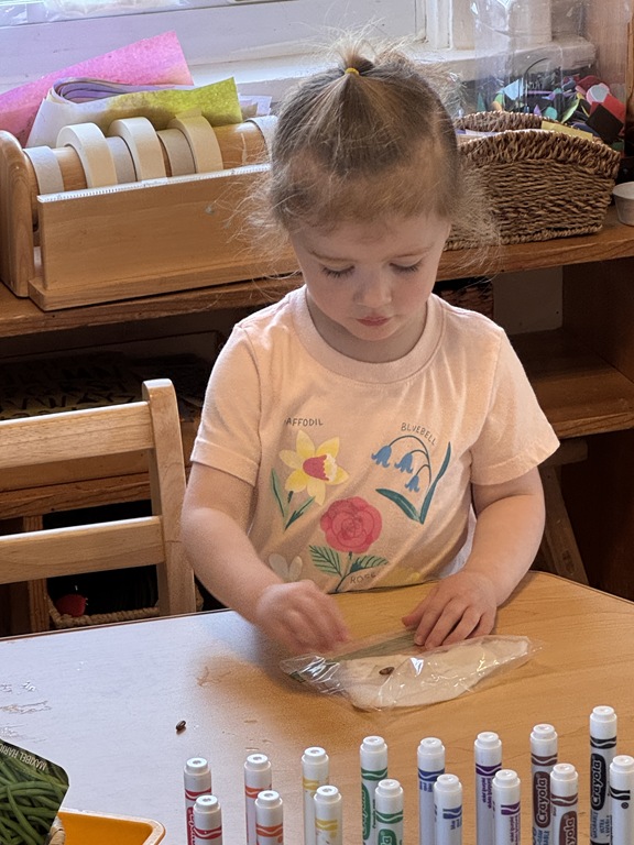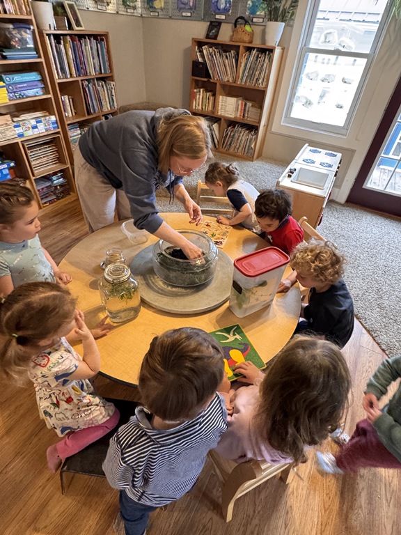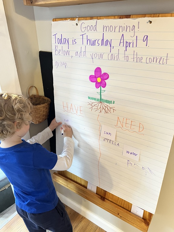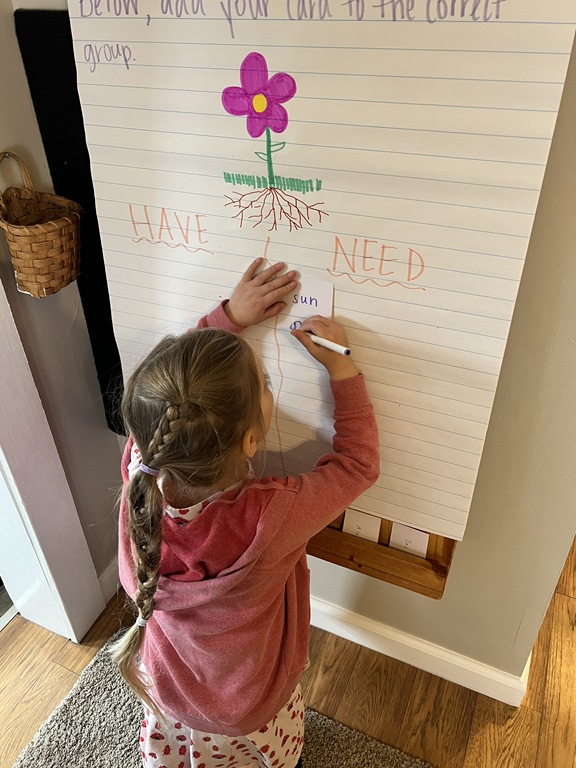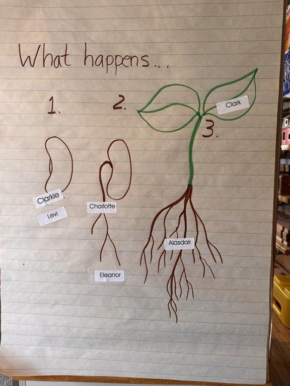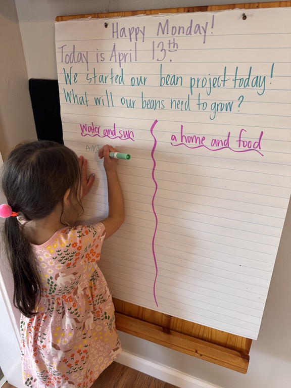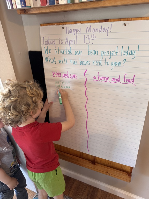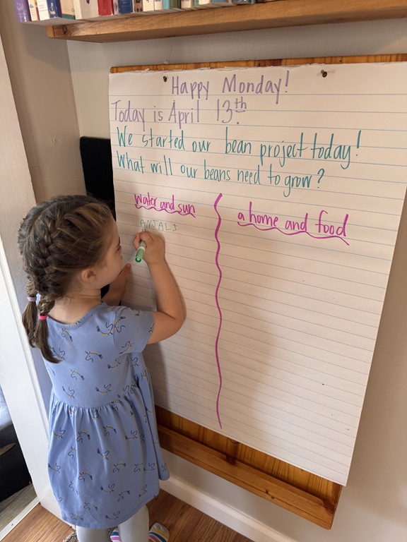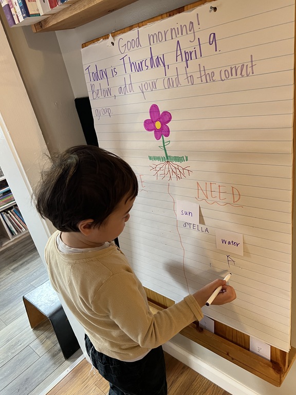 Later on in group, we talked about ‘life cycles’ of plants and animals. We compared the two as we read ‘The Lifecycle of a Sunflower’ and ‘The Lifecycle of a Ladybug’. Kids were quick to raise their hand, sharing something that they knew about ladybugs or a comment they had about an illustration!