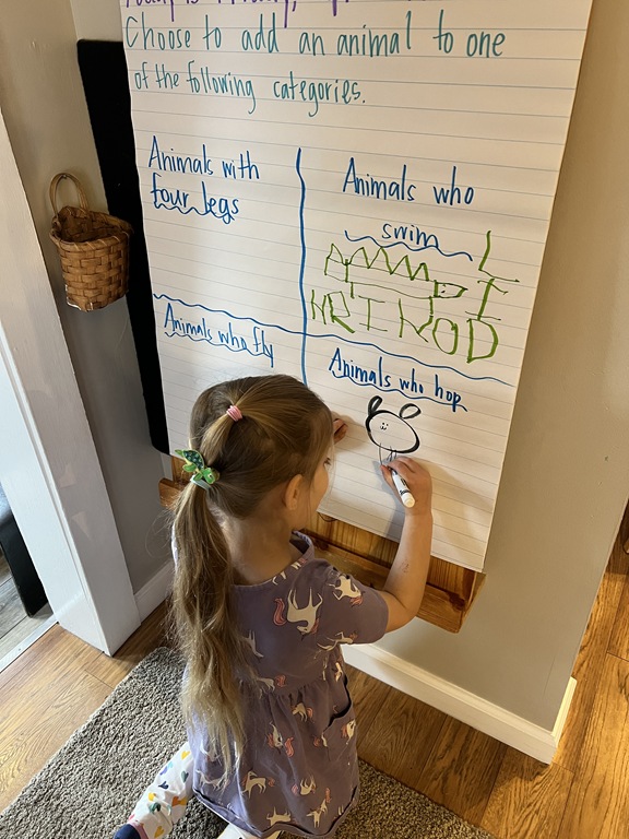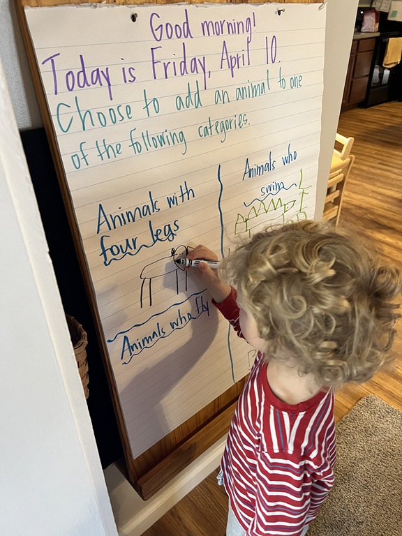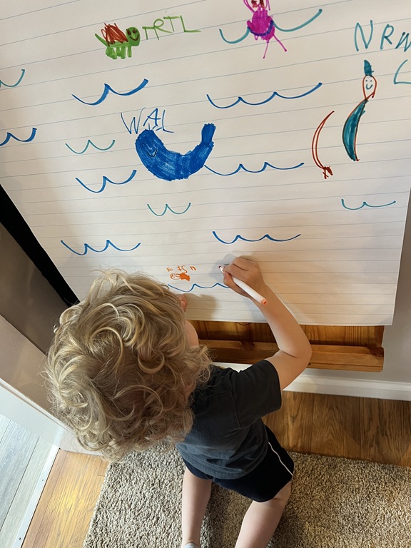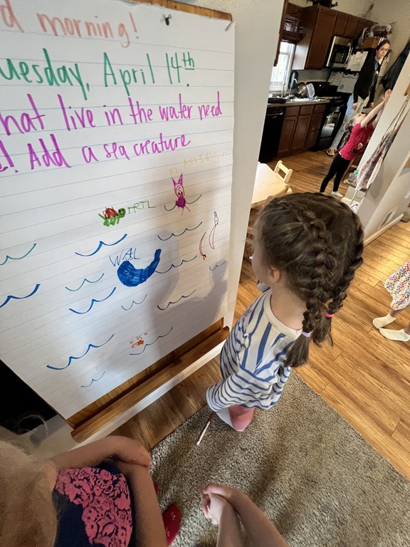 We focused on animals that live in water today for our PREK1 sign in! We created a collective drawing where friends added animals such as a turtle, narwhal, fish, and shark!