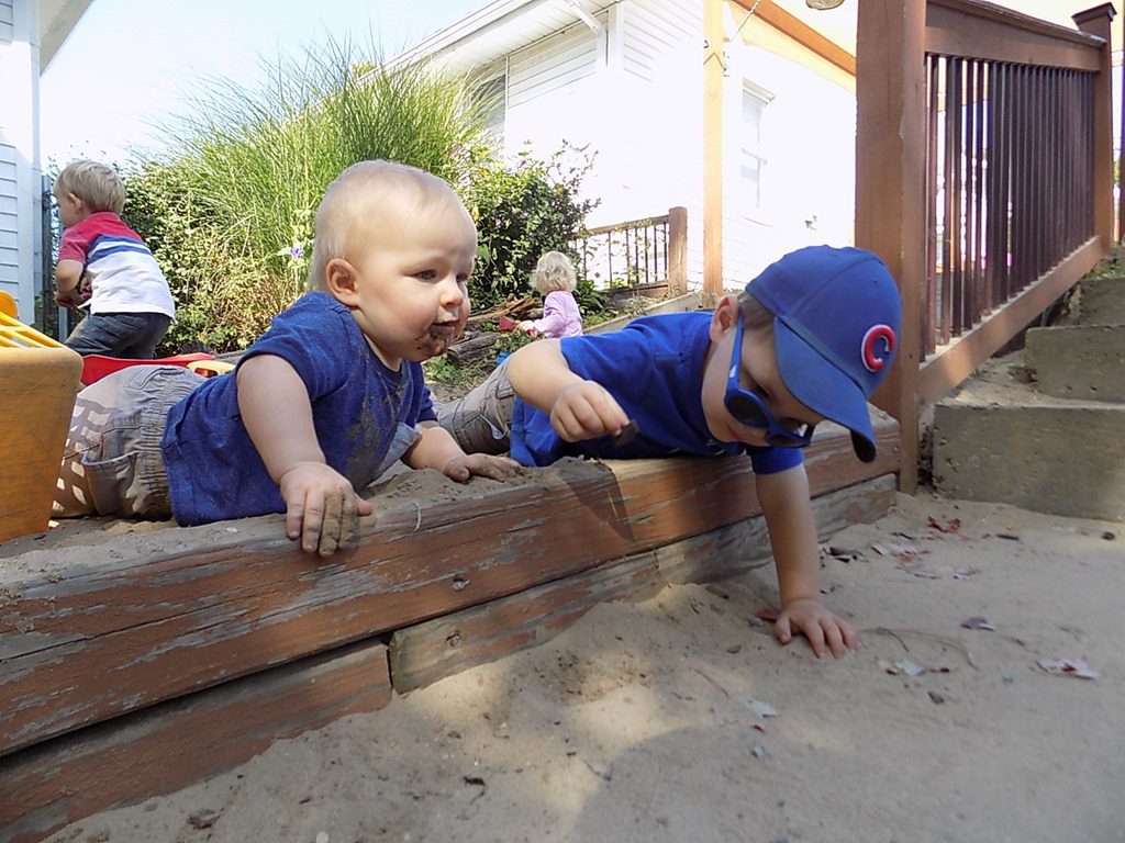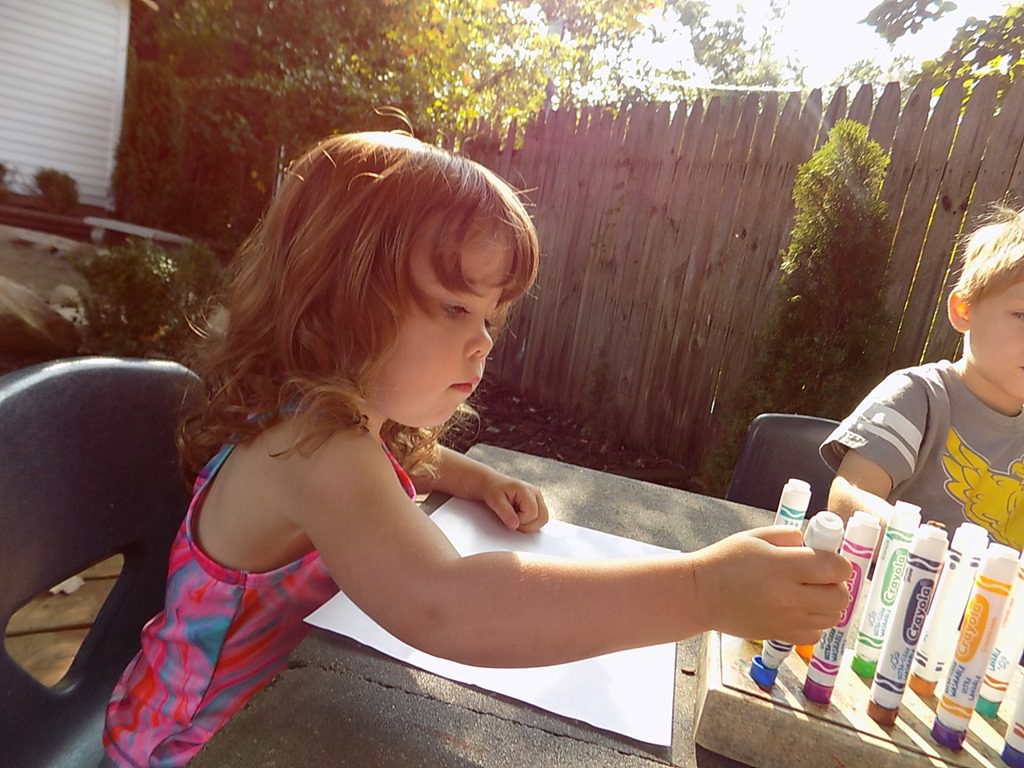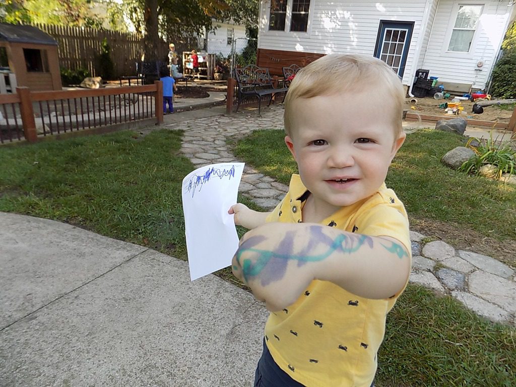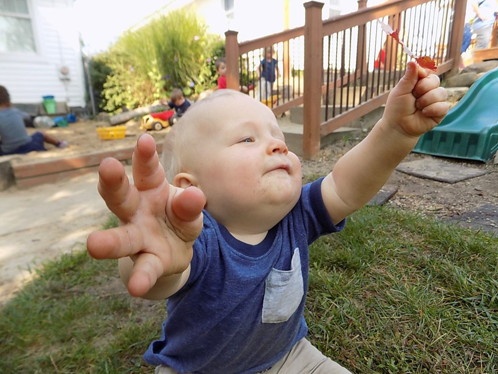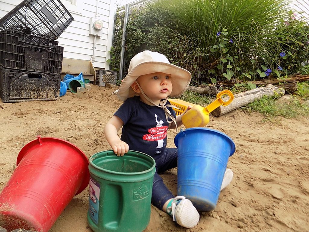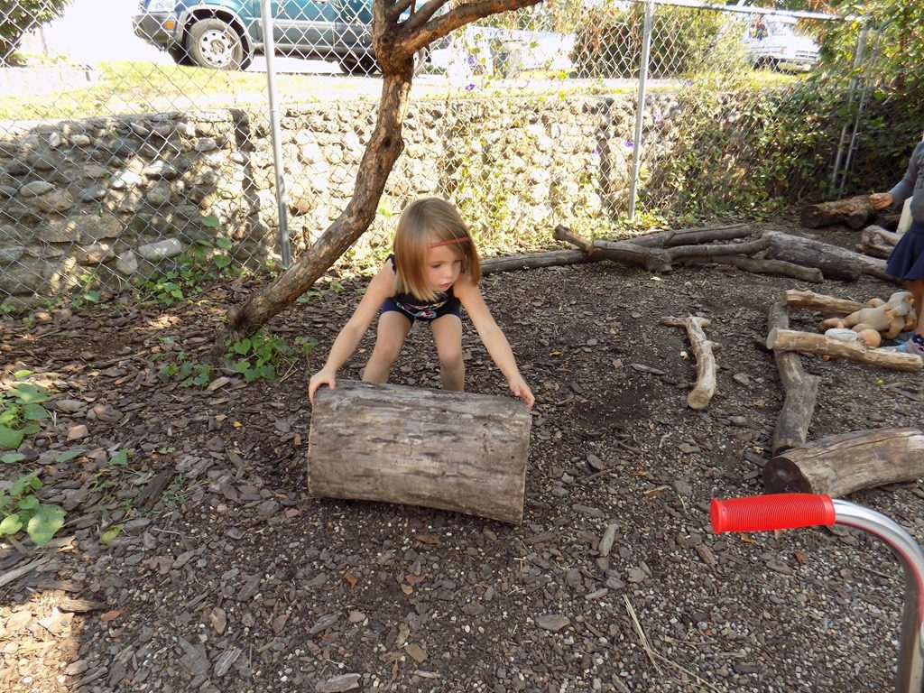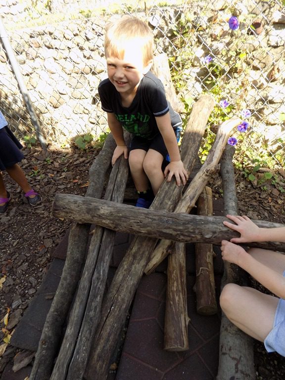 The sun was beating down on us so we ran back to the wooded area where we took turns on the swing and moved logs around. We brought water and paper cups so that we’d stay hydrated. Two bottles of water GONE within five minutes!