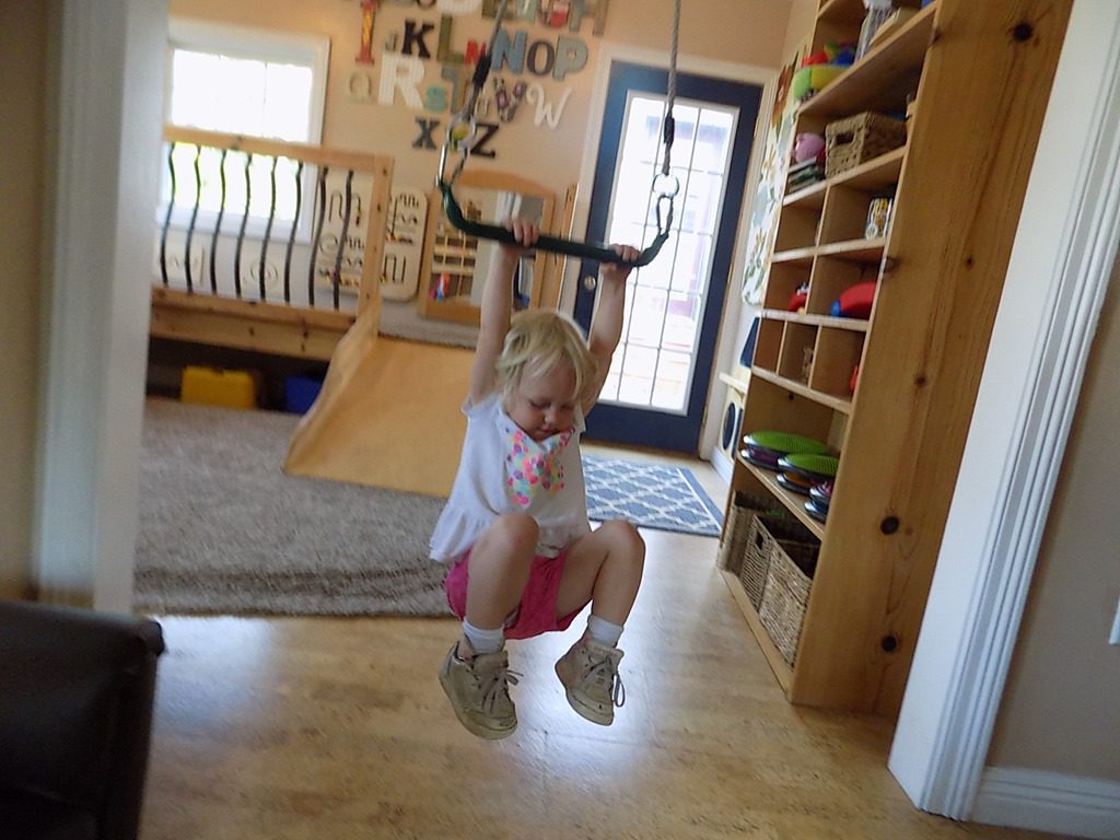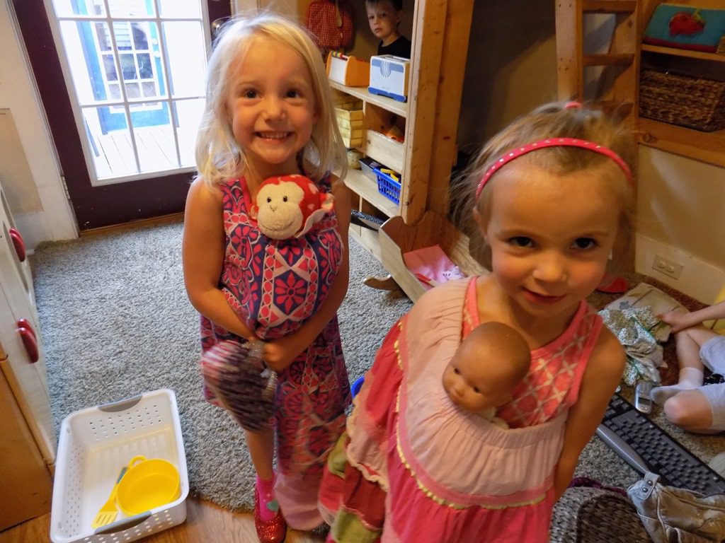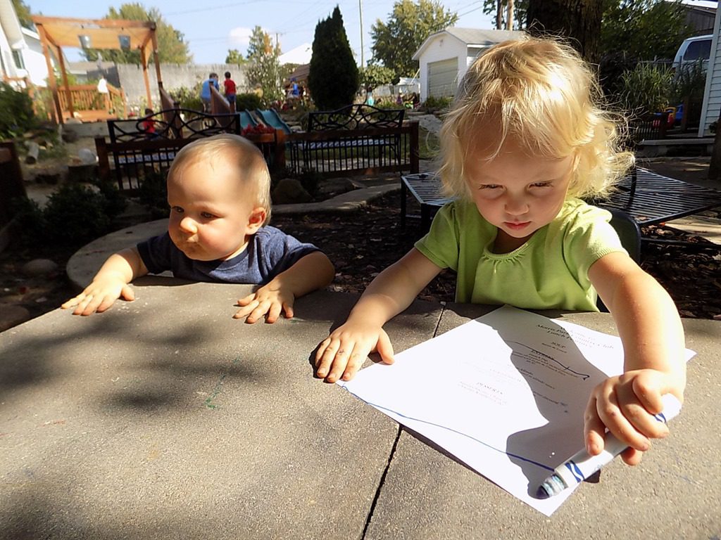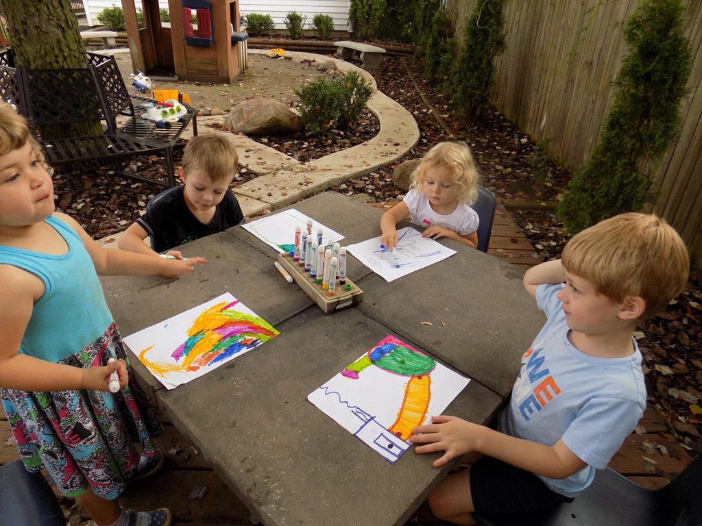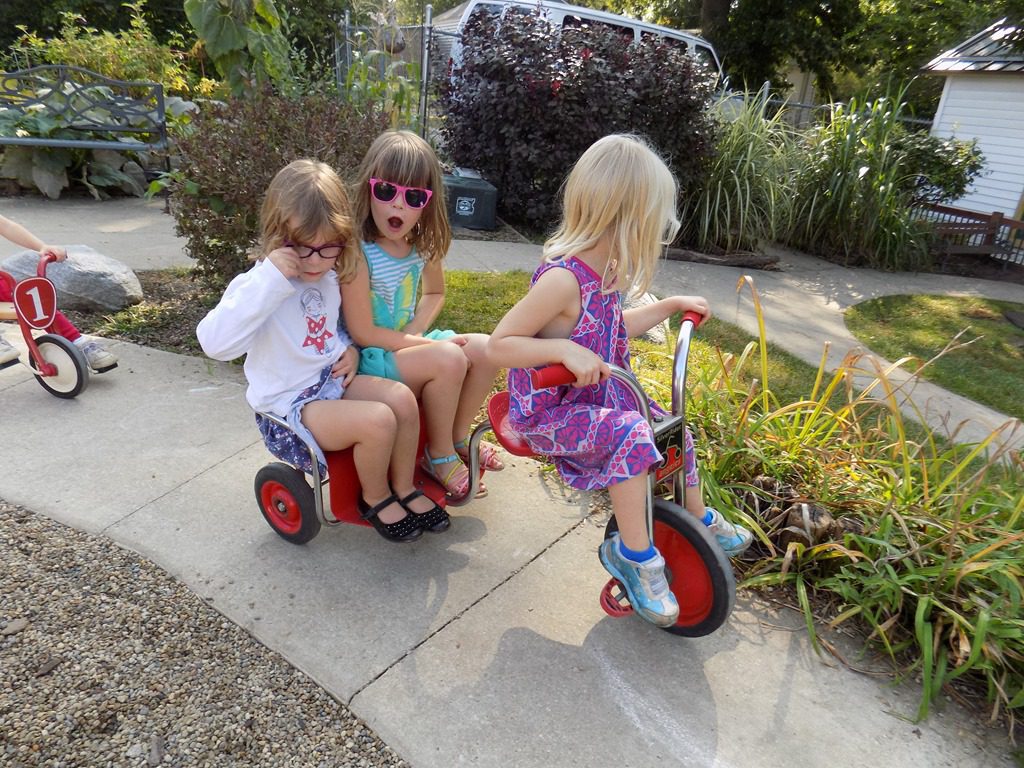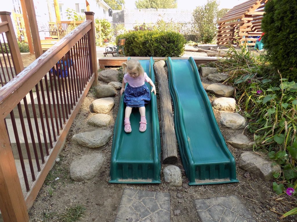 The sun was beating down on us so we ran back to the wooded area where we took turns on the swing and moved logs around. We brought water and paper cups so that we’d stay hydrated. Two bottles of water GONE within five minutes!