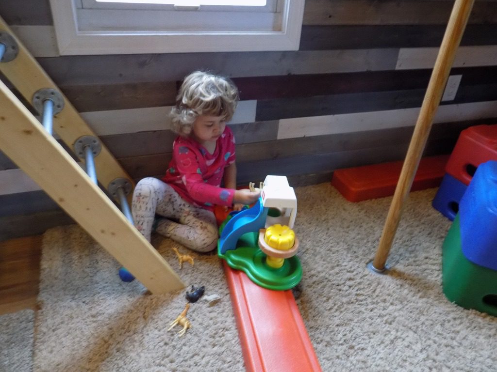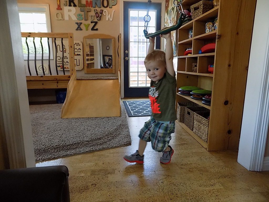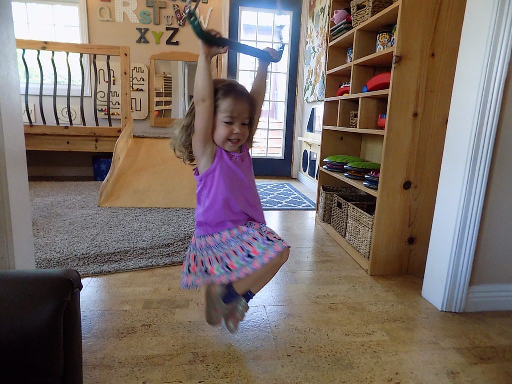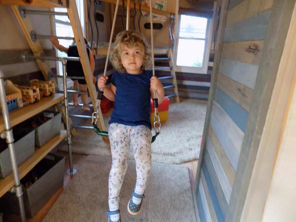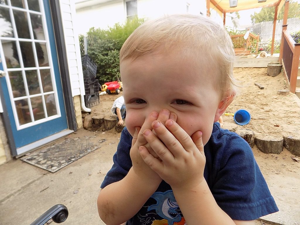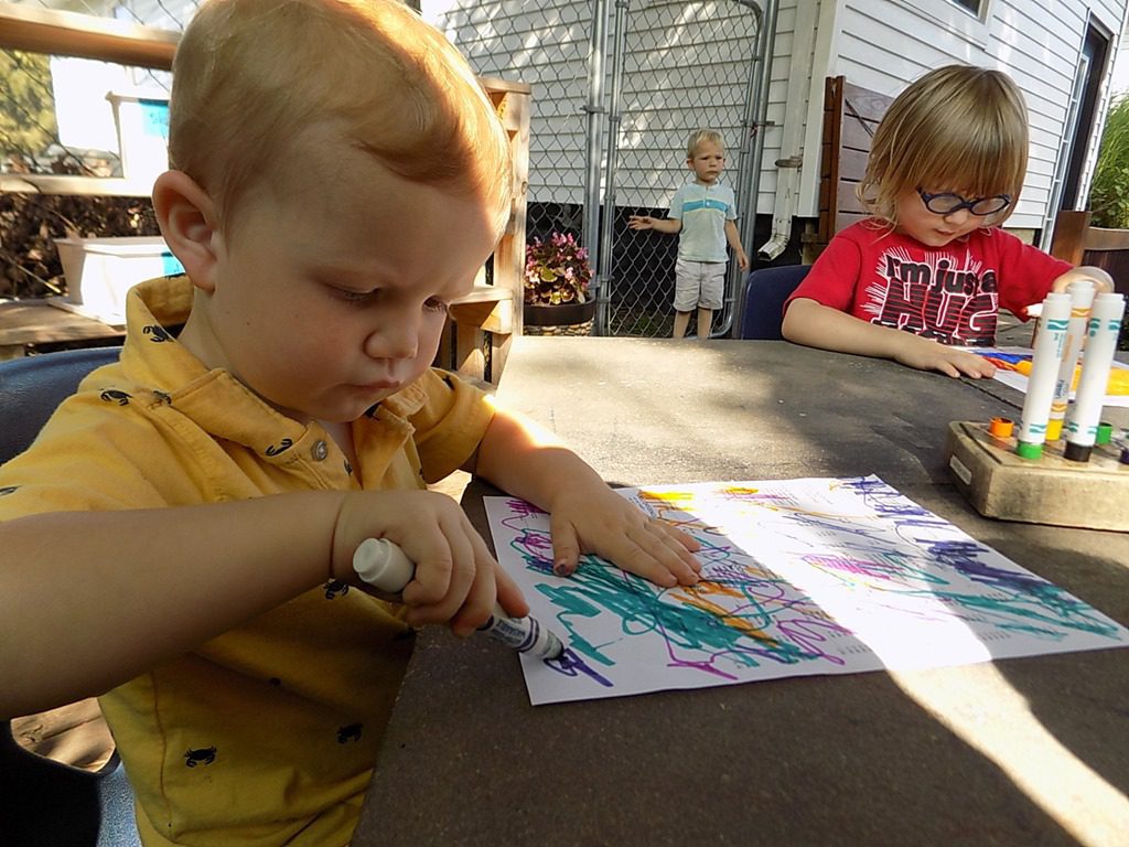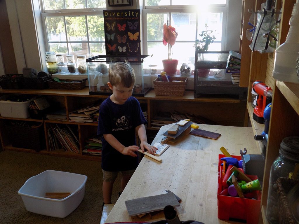 The sun was beating down on us so we ran back to the wooded area where we took turns on the swing and moved logs around. We brought water and paper cups so that we’d stay hydrated. Two bottles of water GONE within five minutes!