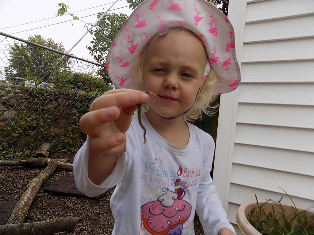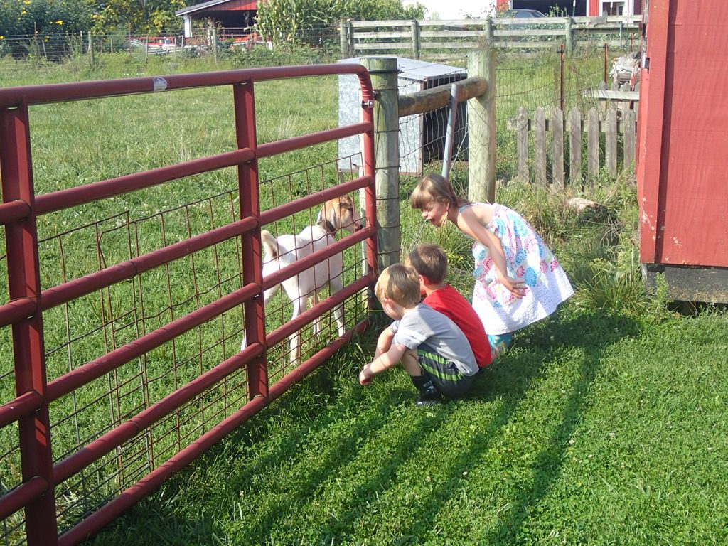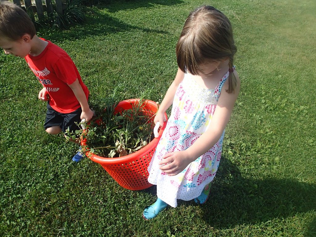 Miss Charlotte collected various weeds and veggies for the goats. We carried the bucket to the goats and thankfully, they were hungry! They at the entire contents of the bucket and seemed quite satisfied.
