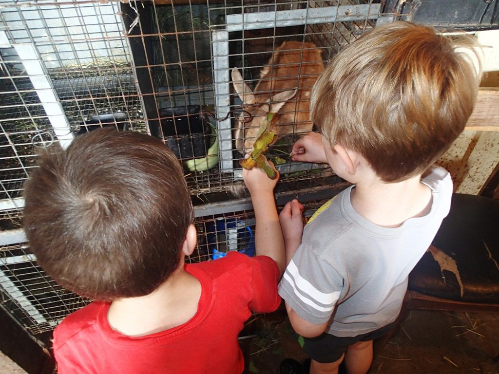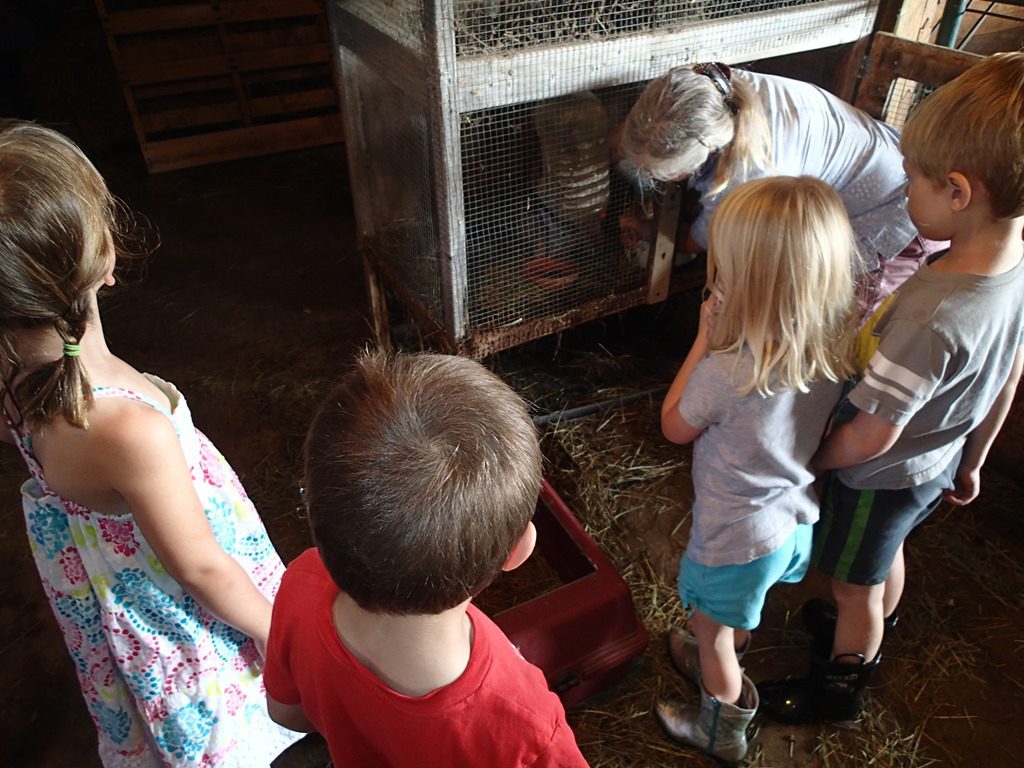 Miss Charlotte explained to us that the bunnies need to be held and given tons of love every single day so that they remain tame. So, we loved on some bunnies and retrieved some white and purple clovers from various areas around the barn.
