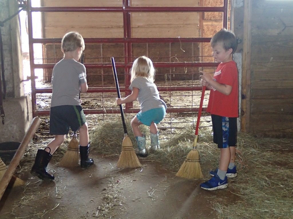 Afterwards, we each grabbed a broom and helped Miss Charlotte clean up the barn floor. We swept all of the hay that was on the ground into the horse area for them to eat! Lucy commented to Miss Charlotte, “Keeping the barn clean is tough work!”