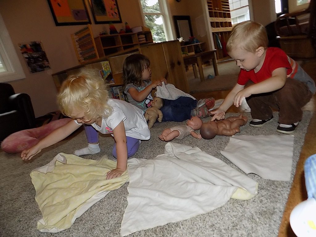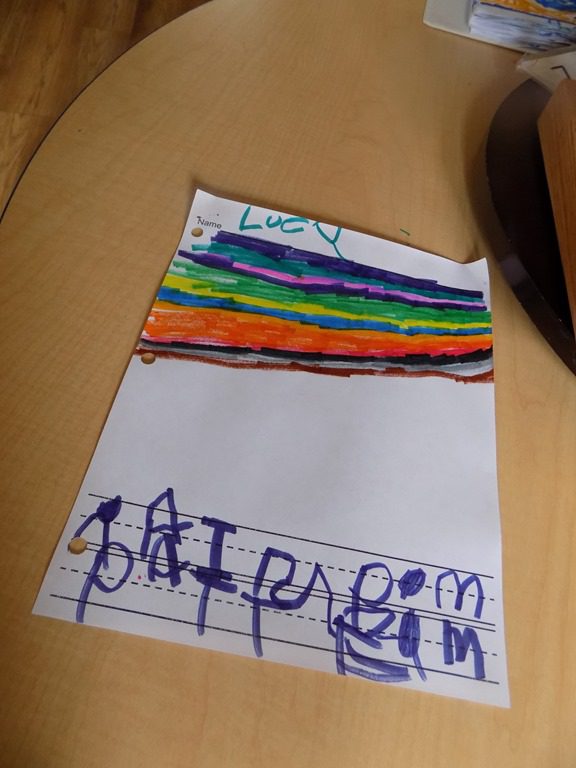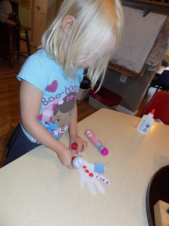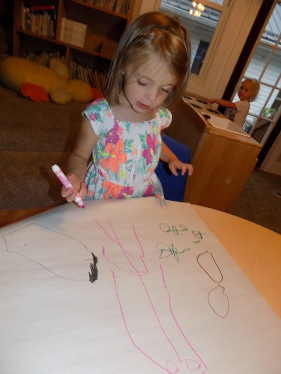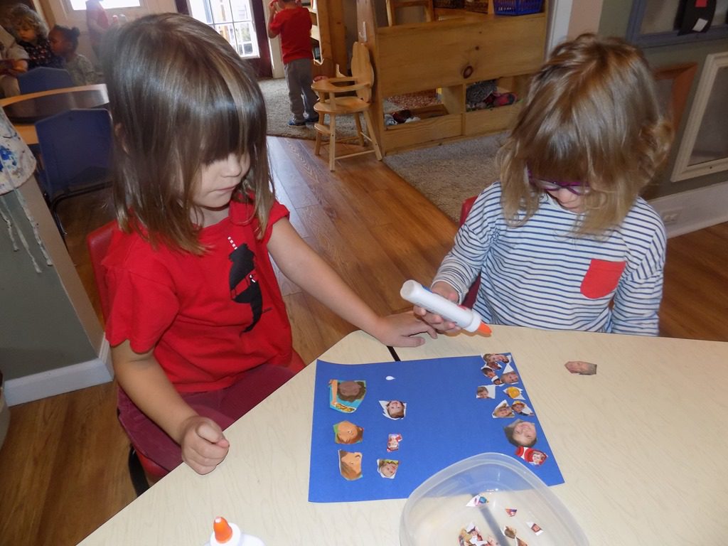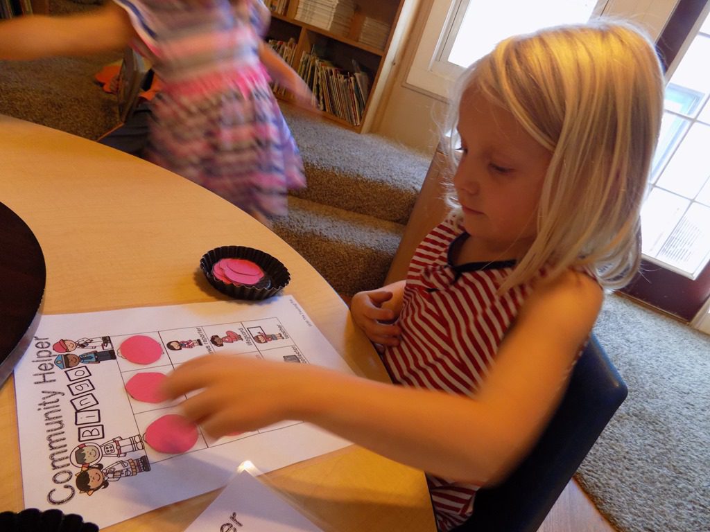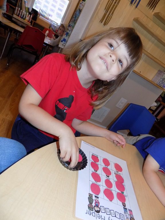 In large group, we read two stories that focused of a specific community helper: firefighter! We learned that firefighters live at the fire station when they’re working. Several items that firefighters wear were also layed out in the story. There isn’t just one type of firetruck; there are several, including the pumper truck! The following questions was presented: