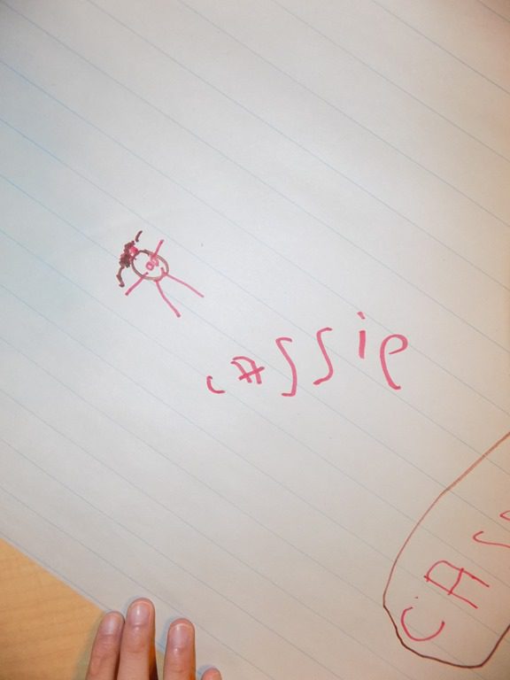 We came up with a list of other materials we can paint with besides paint brushes. Friends shouted out ‘sponge’ and ‘hands’ to name a few.