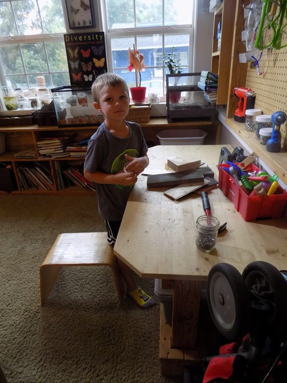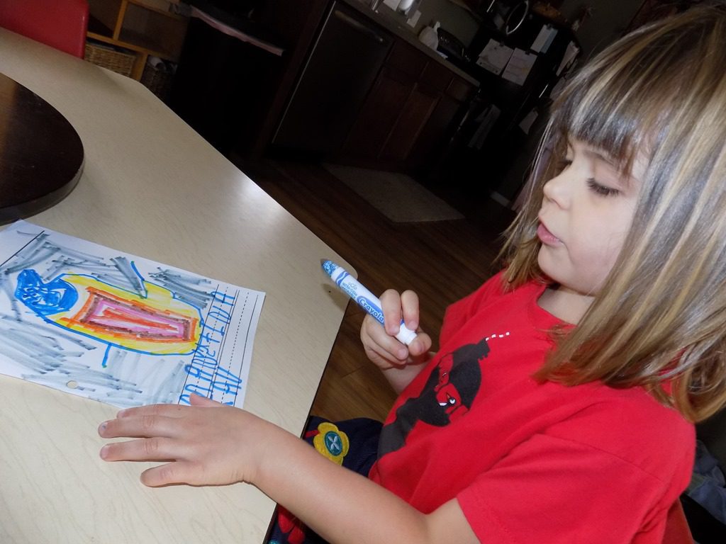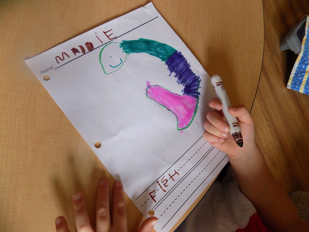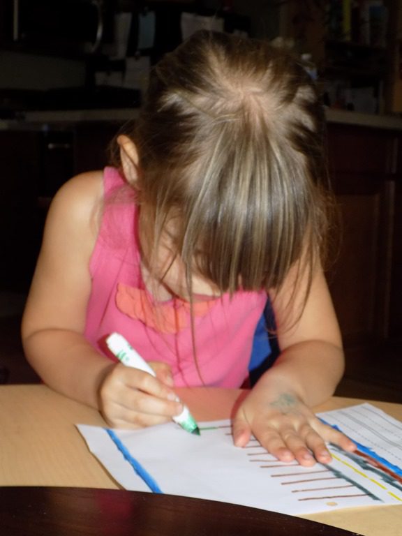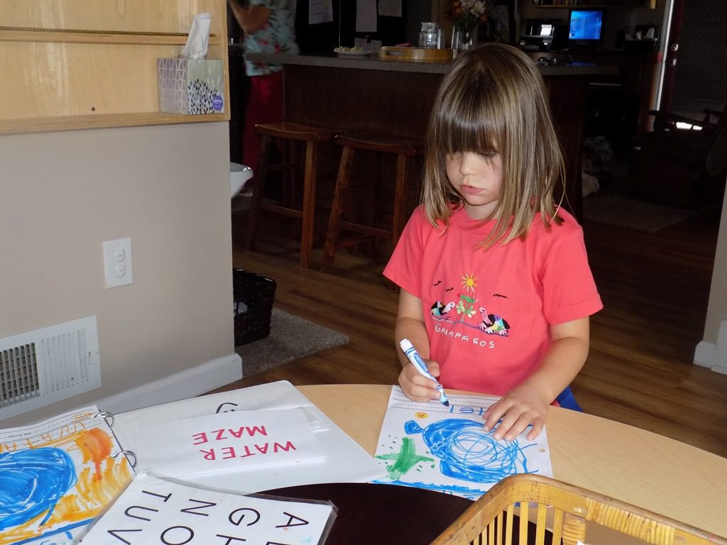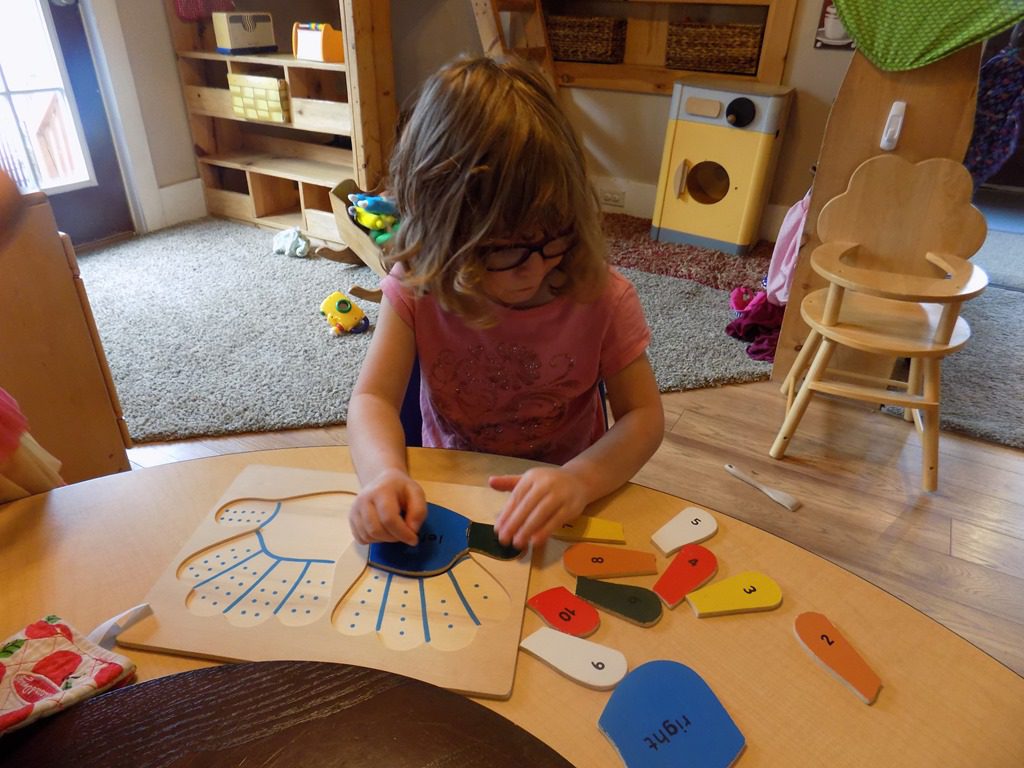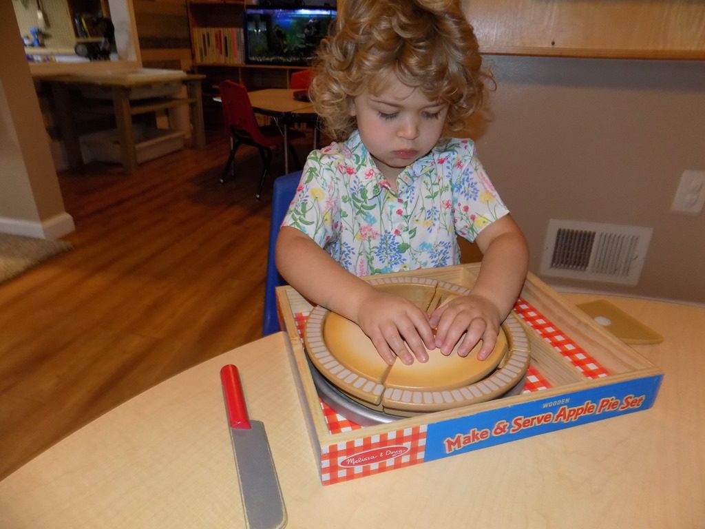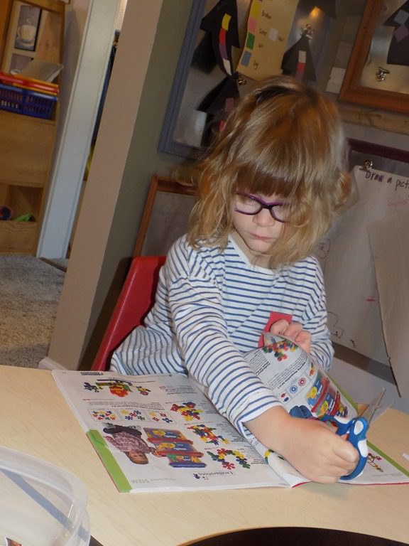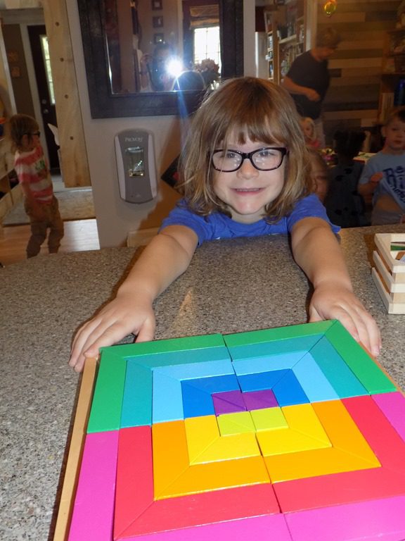 Maddie focused on pattern blocks this morning. She picked several pattern cards and completed the pattern using colored blocks. These pattern blocks are quite tricky as the blocks have to be put in a certain way! Maddie shouted, “I did it! I think I’ll do another one!”