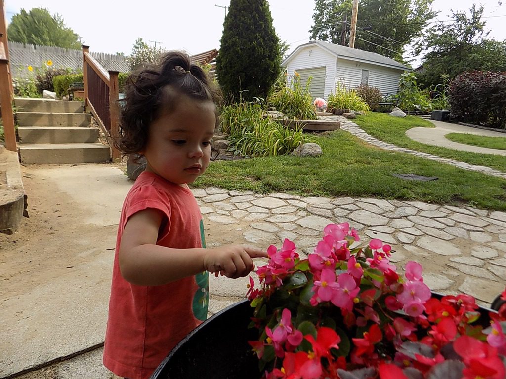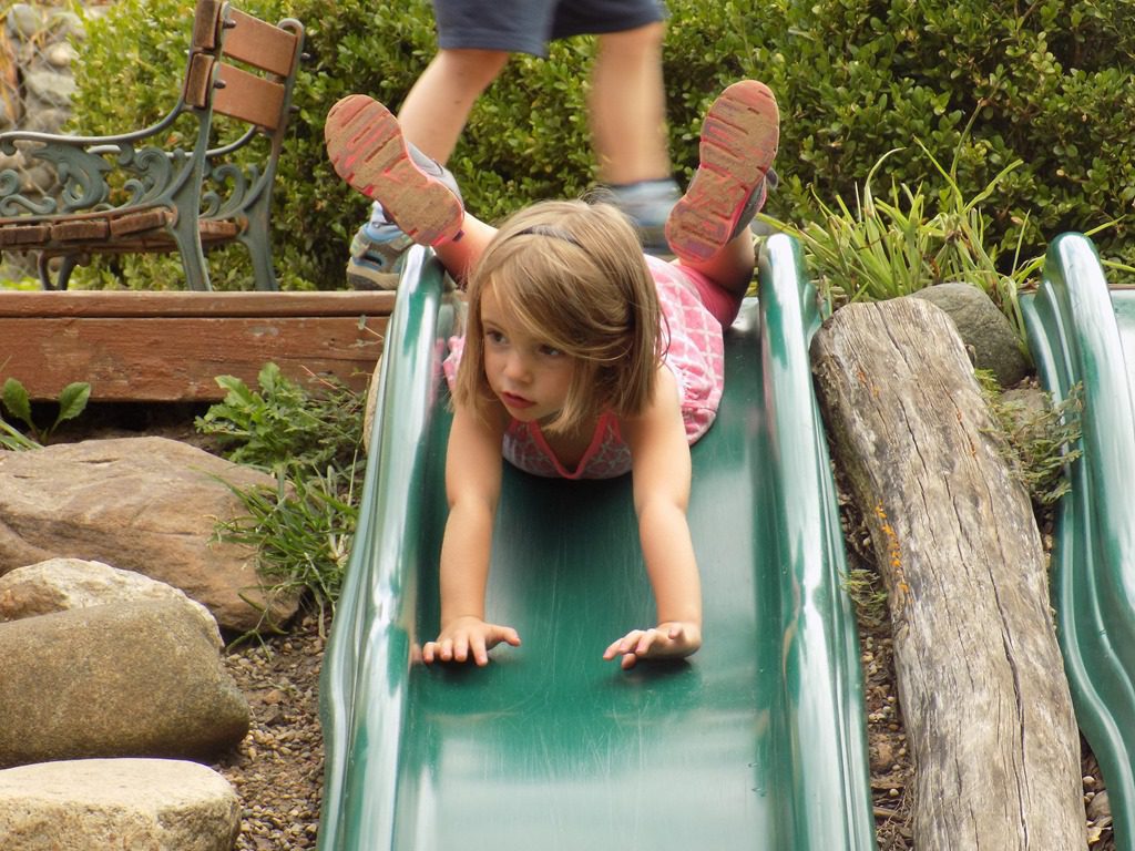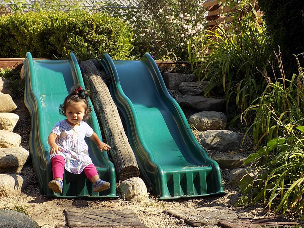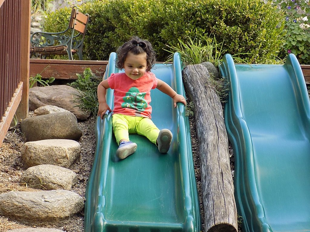 Rose admired the flowers outside and zoomed down the slide…