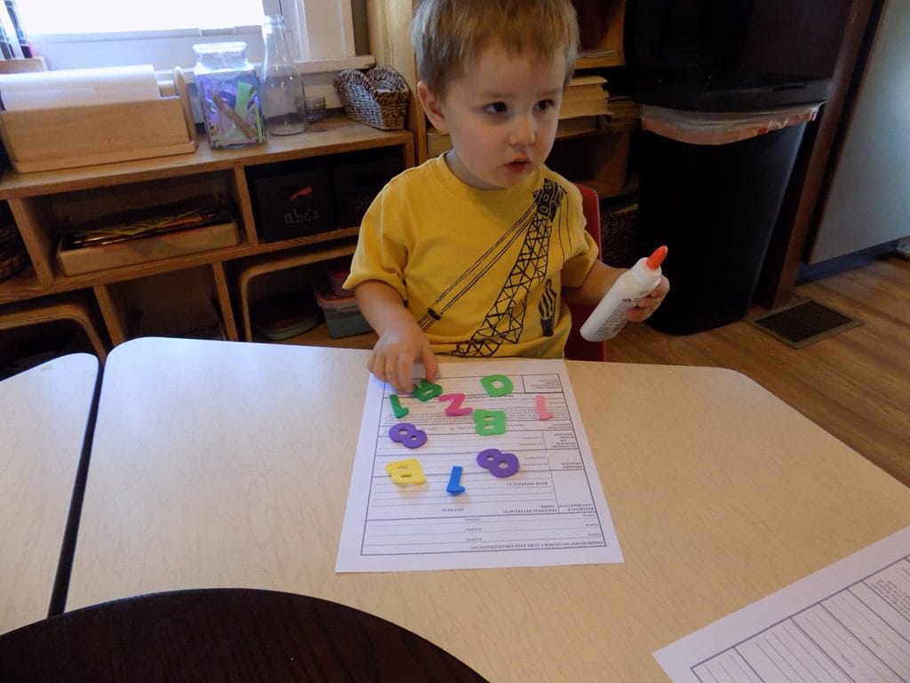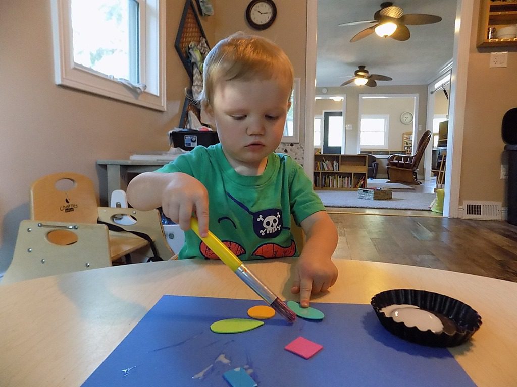 The rest of our day consisted of fine motor work at the art table, mainly with glue and scissors. Our younger friends are working on gluing items to paper and holding scissors correctly.