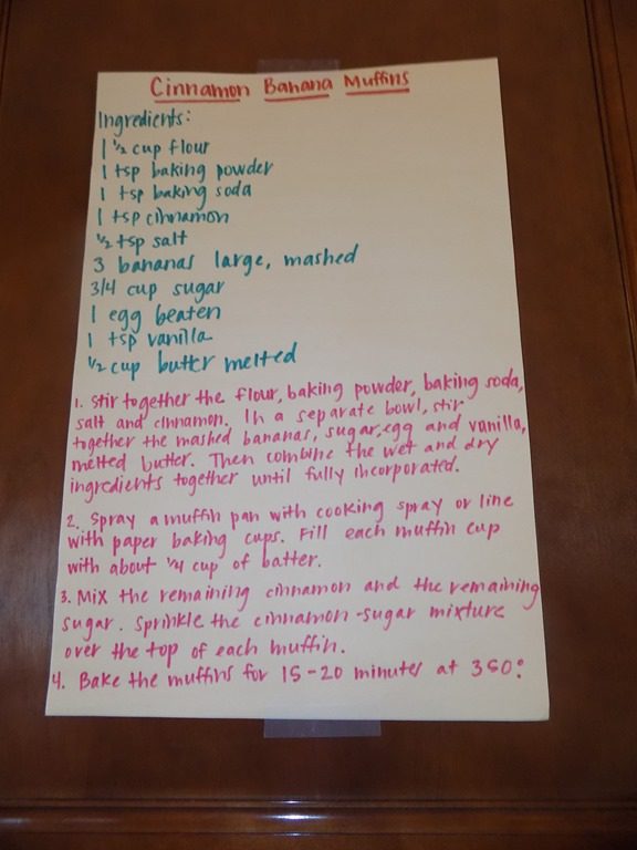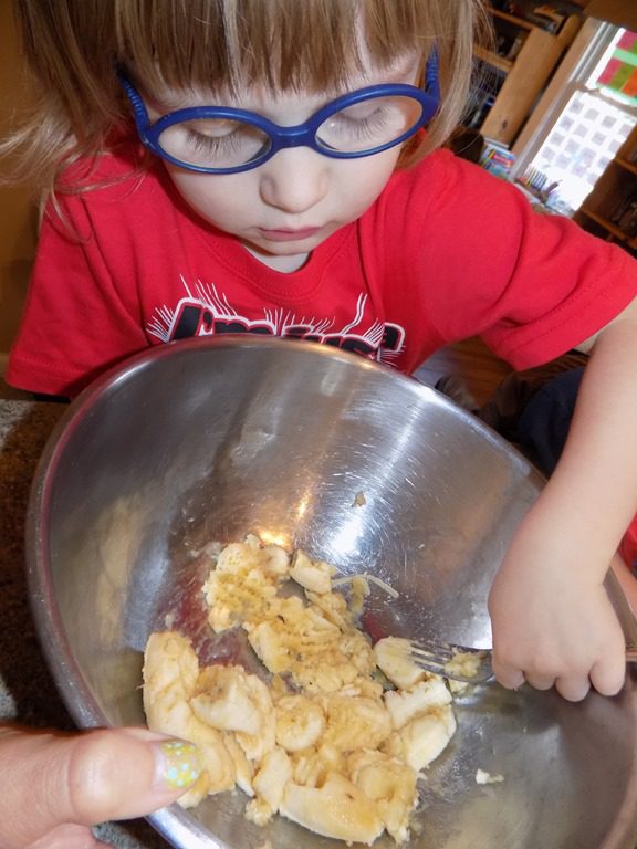 We made some homemade cinnamon banana muffins for snack this afternoon.  They were delicious!