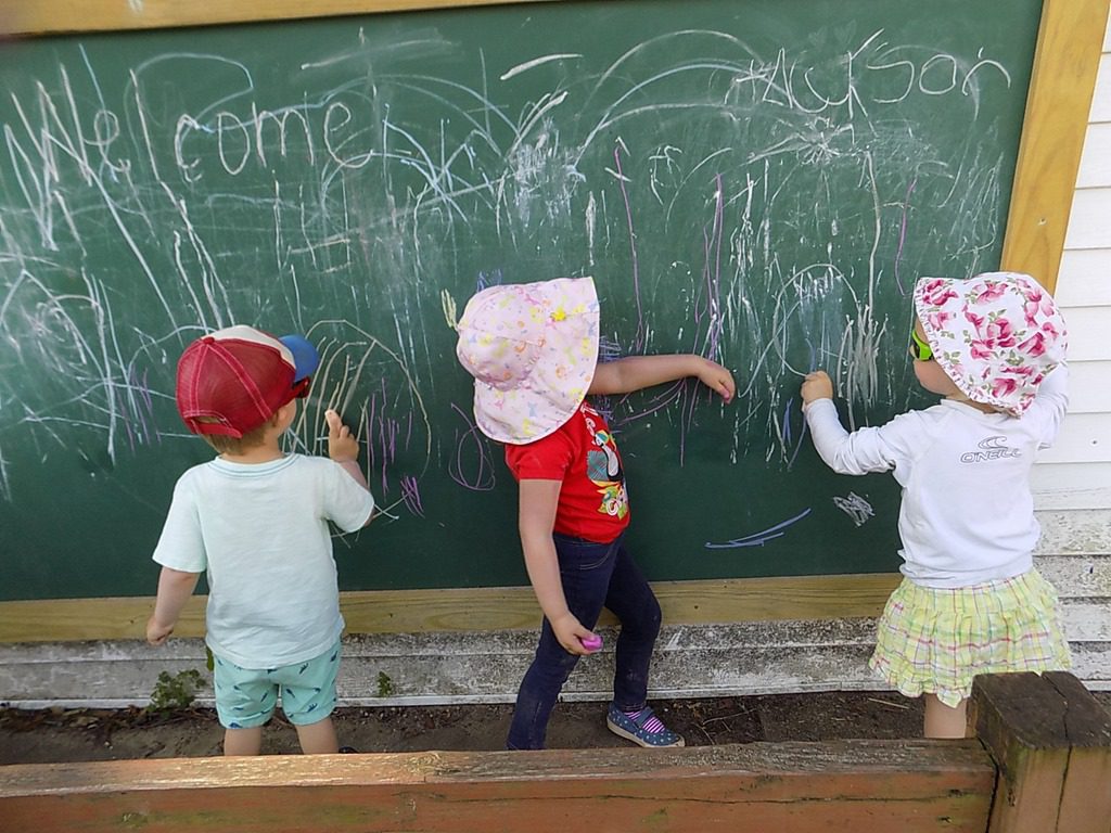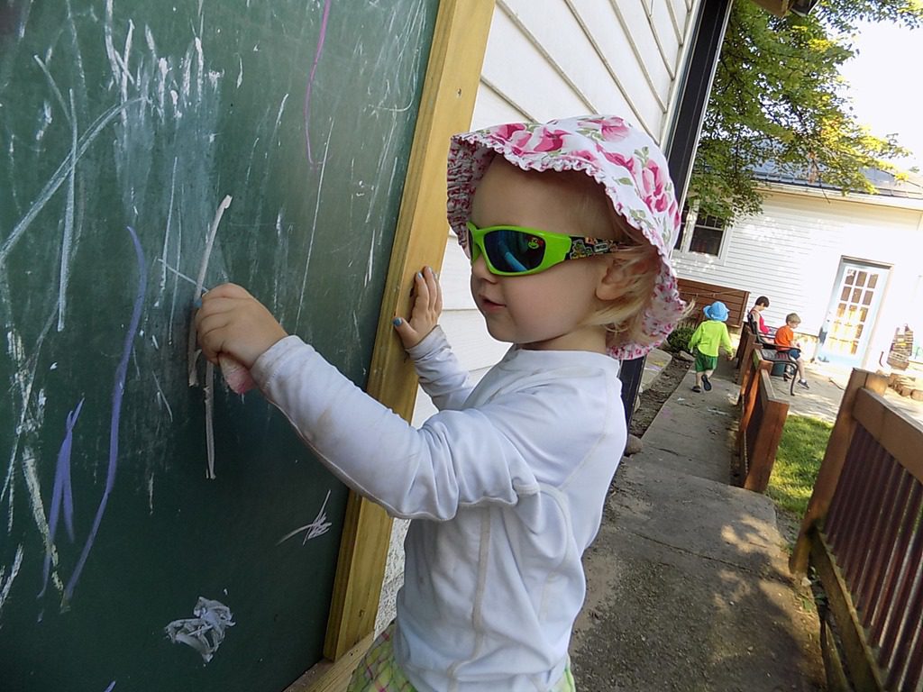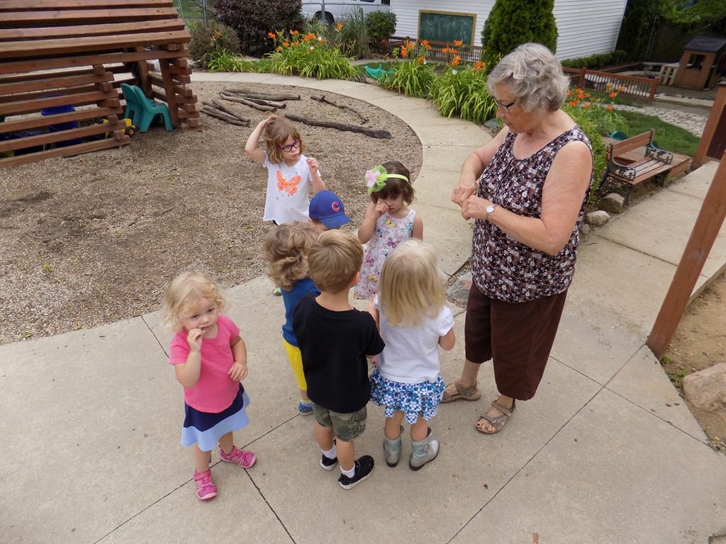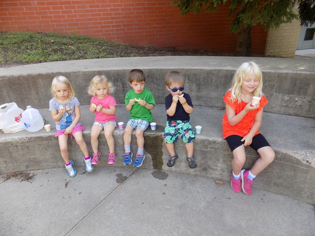 We headed down to the bigger playground but first we stopped to have our Wee Sprout snack. Children ate cucumbers and had many cups of water to stay hydrated.