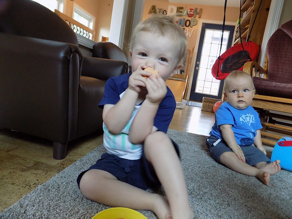 Lunch– Melted shredded cheese on toasted bagels, grapes, and cucumbers/peppers.